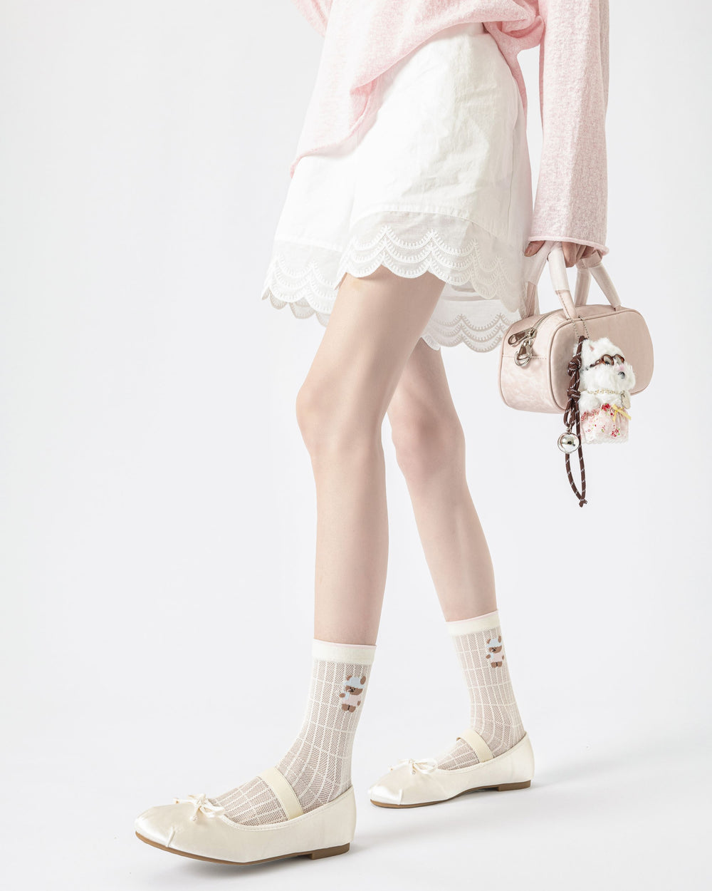 軽やかでソフト、暖かい日にぴったりの—Sweetnana Summer Bear クルーソックスは、毎日の装いにやさしい魅力を添えます。通気性のあるニットの質感とキュートなベアモチーフで、カジュアルかつスイートな印象をキープしつつ、スタイリングしやすいさりげない“summer mood”のディテールをプラスします。