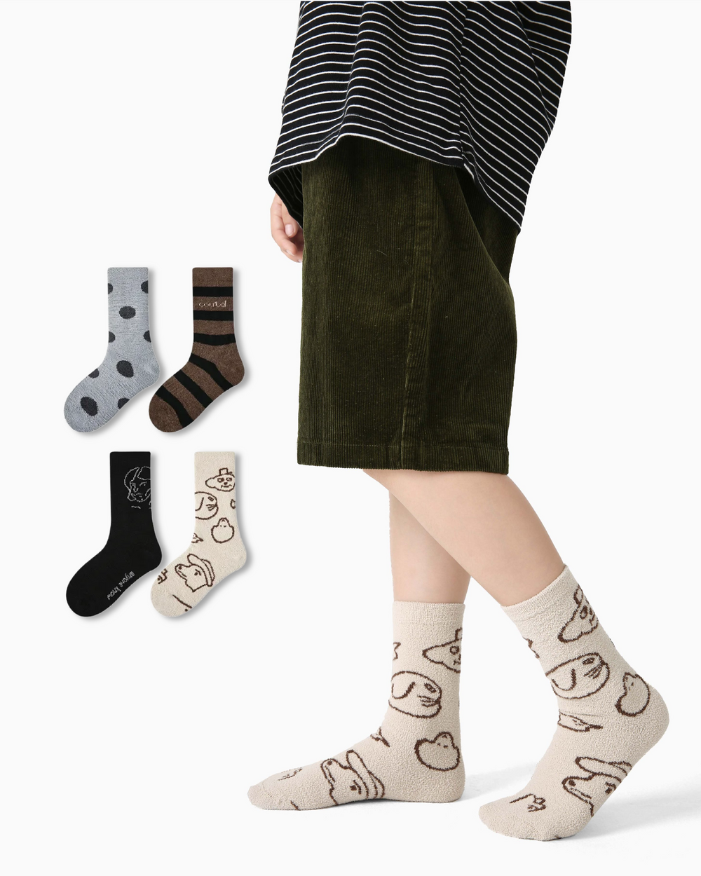 ニュートラルで組み合わせやすいベーシックアイテムに、かわいらしさをプラス。この5足セットのSweetnanaには、クマのアウトライン、ポルカドット、ストライプ、そして無地のスタイルが、使いやすい日常カラー(ブラック、クリーム、グレー、ブラウン)で揃っています。クルー丈はスニーカーやブーツにきれいに収まり、遊び心のあるクマのグラフィックがコーディネートを楽しくしつつも派手すぎません。