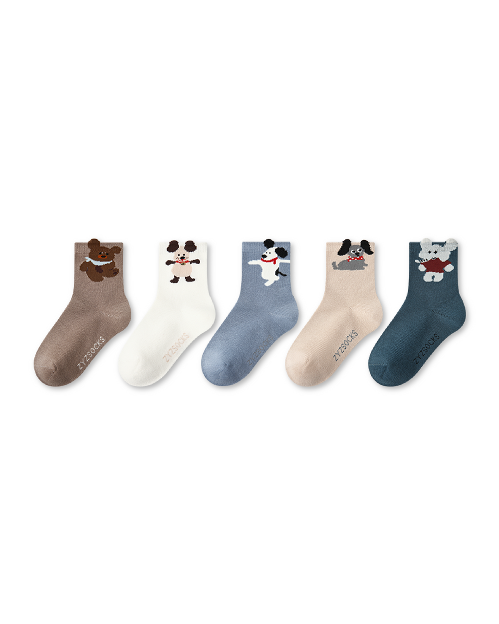 Sweetnana 遊園地パーティー クルーソックスセットは、遊園地で過ごす一日の喜びに満ちた活気を捉えています。踊る子犬たち、抱き合うクマたち、空を飛ぶ犬たち、マフラーを巻いた子犬たちなど遊び心あふれるキャラクターをあしらい、それぞれの1足が動きと楽しさにあふれる生き生きとした物語を描き出します。