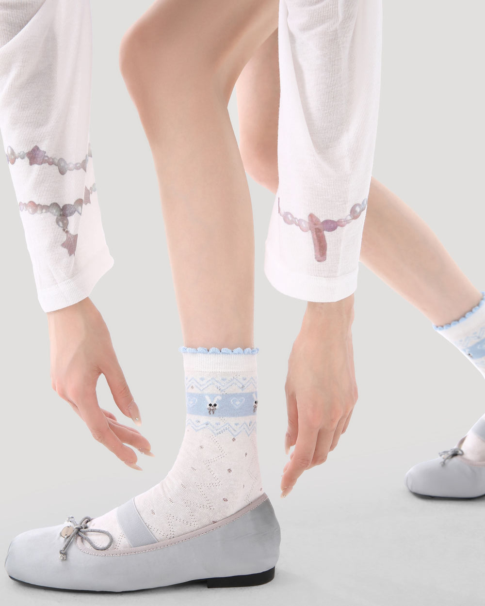 出会う やわらかなブルーの小島 — 軽やかな春夏のスタイリングのために作られた、やさしいライトブルーのカプセル。Sweetnana Bunny Embroidery クルーソックスは、高混率のコーマ綿と柔らかくしなやかなフィット感を組み合わせ、通気性がよく、繊細で「おめかしにもぴったり」な毎日使いの一足に仕上げています。