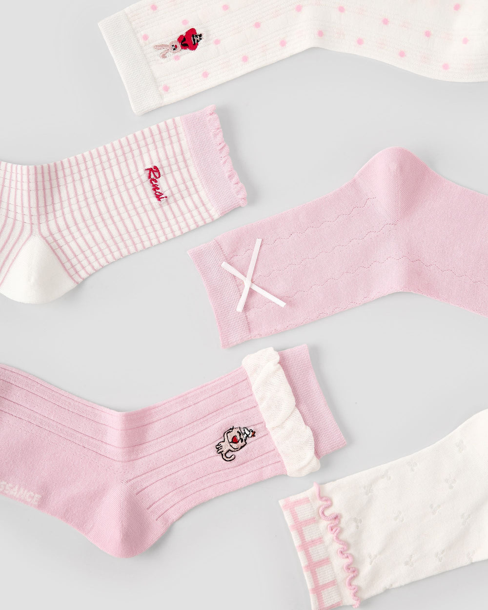 Sweetnana Sakura Rabbit Gift Boxで、春のやさしい彩りを毎日のスタイルに。5足セットで、繊細な桜色と愛らしいうさぎのディテールを組み合わせ、軽やかで遊び心があり、さりげなく魅力的な物語のような雰囲気を演出します。