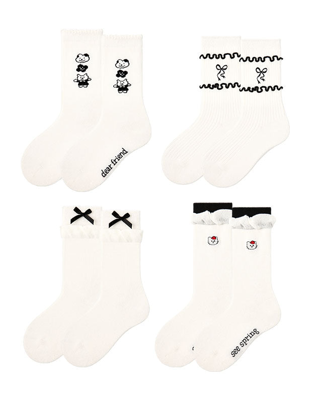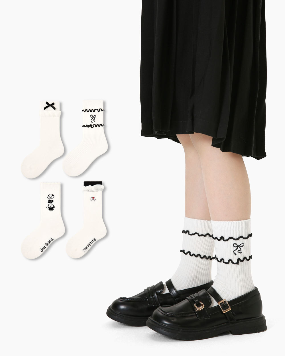 柔らかく遊び心があり、どんなコーディネートにも合わせやすいSweetnanaキッズ刺繍ソックス4足セットは、元気いっぱいの小さな足のためにデザインされています。各ペアにはシンプルなウェーブトリムとかわいい刺繍が施されており、通学や家族のお出かけ、週末の遊び時間に楽しいアクセントをプラスします。