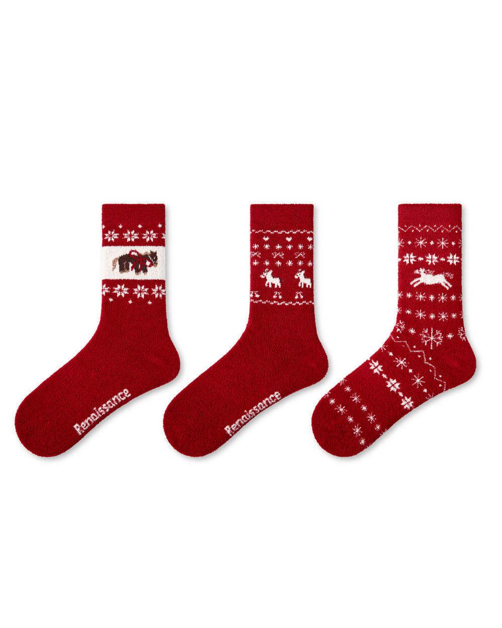 통기성 좋은 콤브드 코튼 블렌드로 제작되어 각 켤레가 편안한 신축성과 안정적인 편직 구조를 제공해 일상적인 겨울 착용에 적합합니다. 코디된 레드 톤과 은은한 패턴 변주로 실내 휴식, 계절 스타일링 또는 뜻깊은 새해 선물용으로 이상적입니다.