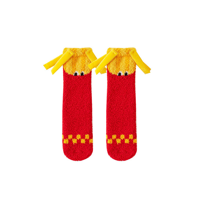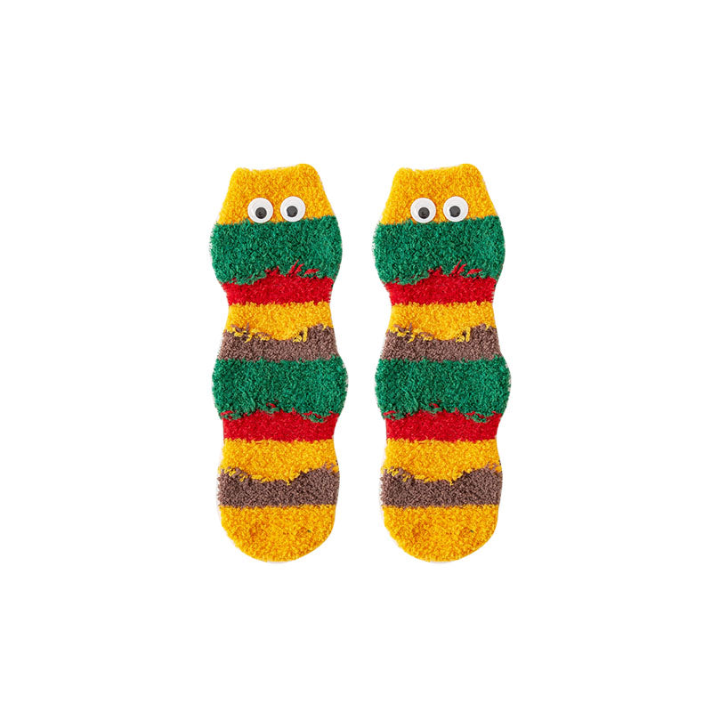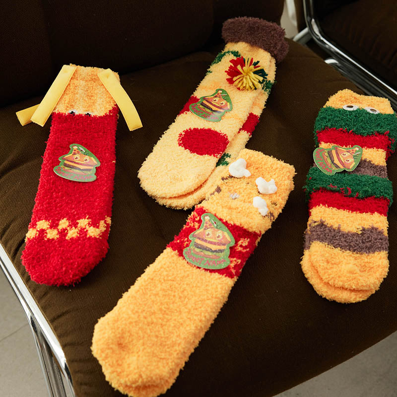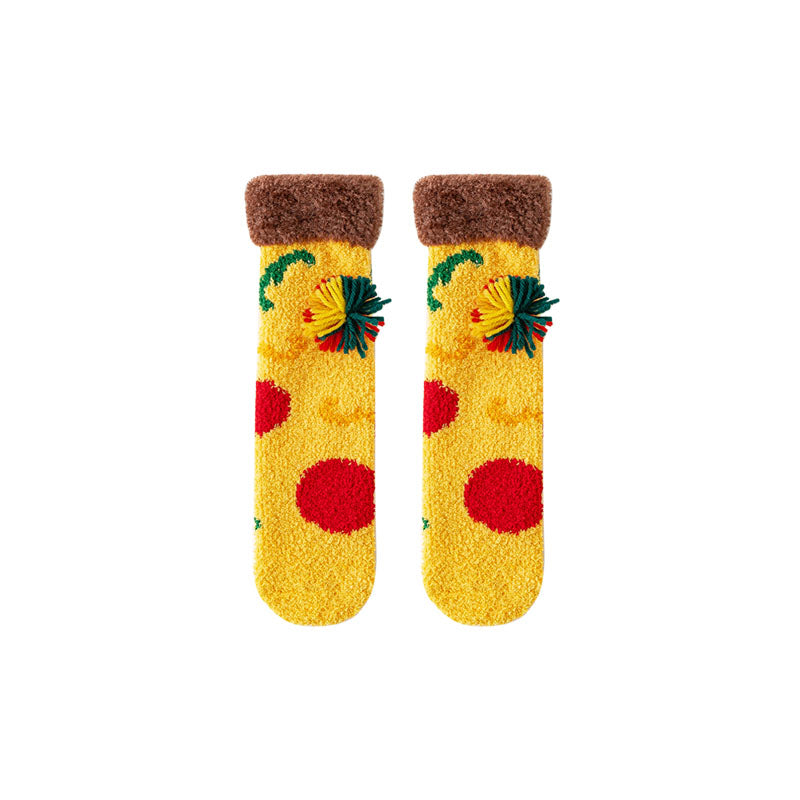 Sweetnana 논슬립 포근한 양말 선물 박스는 집에서 따뜻하고 행복한 발을 위한 세 가지 장난기 가득한 보송보송한 양말을 번들로 제공합니다. 구성품은 줄무늬 '구글리 아이' 양말 한 켤레, 자카드 포인트가 있는 빨간색 태슬 커프 양말 한 켤레, 귀여운 자수로 장식된 파인애플 모티브 양말 한 켤레입니다. 두툼한 플러시 니트 소재로 가을과 겨울에 구름처럼 부드럽고 따뜻함을 선사하며, 바닥 전체에 실리콘 논슬립 처리가 되어 나무나 타일 바닥에서 미끄럼을 방지해줍니다.