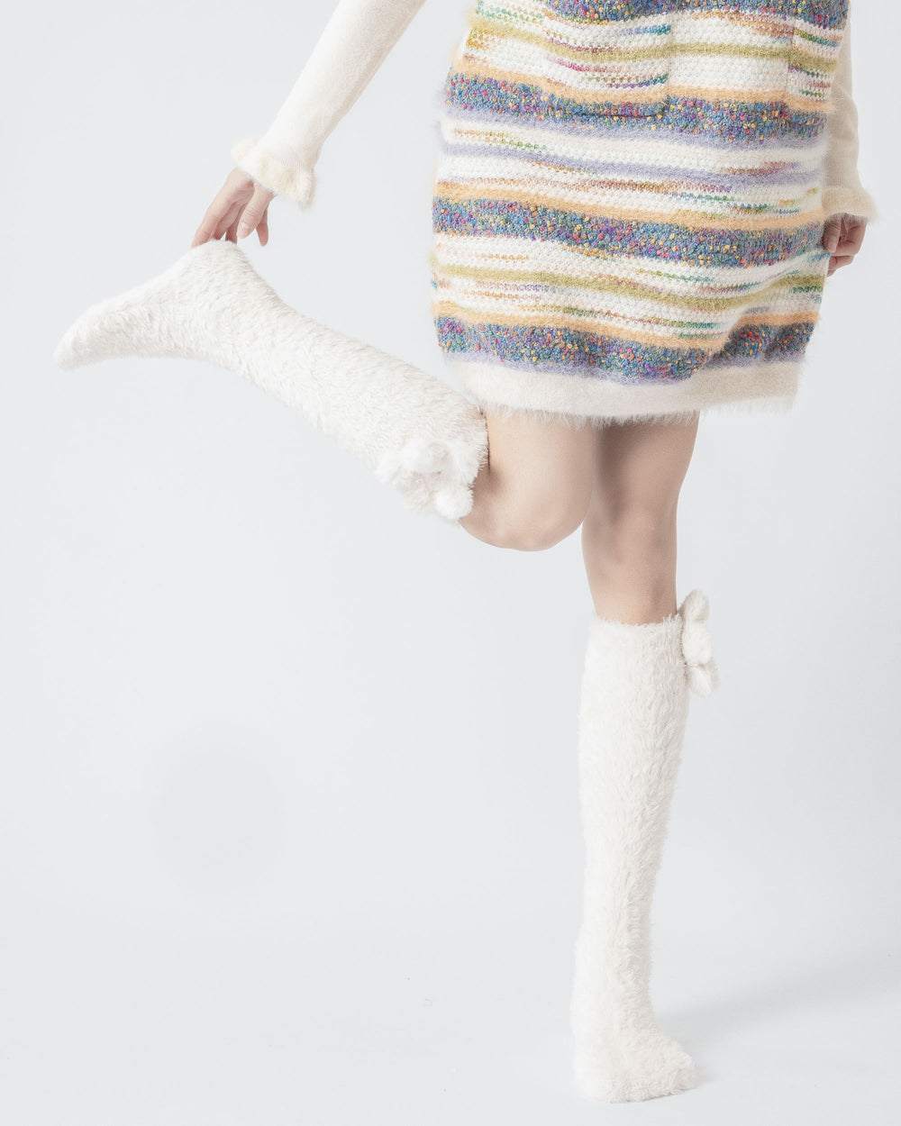 Sweetnana 플러피 솔리드 색상 종아리 양말 (3-팩)은 따뜻함과 부드러움을 위해 제작된 미니멀한 디자인이 특징입니다. 각 양말은 초미세 폴리에스터 섬유로 짜여져 구름처럼 폭신하고 피부에 부드럽게 닿는 촉감을 제공합니다. 두꺼운 파일 구조로 추운 날씨에도 뛰어난 보온성을 자랑하며, 은은한 파스텔 톤의 화이트, 핑크, 라벤더 색상이 집에서 입는 홈웨어에 포근하고 아늑한 매력을 더해줍니다.