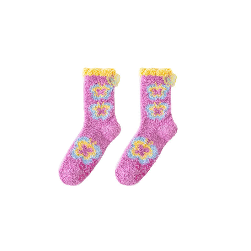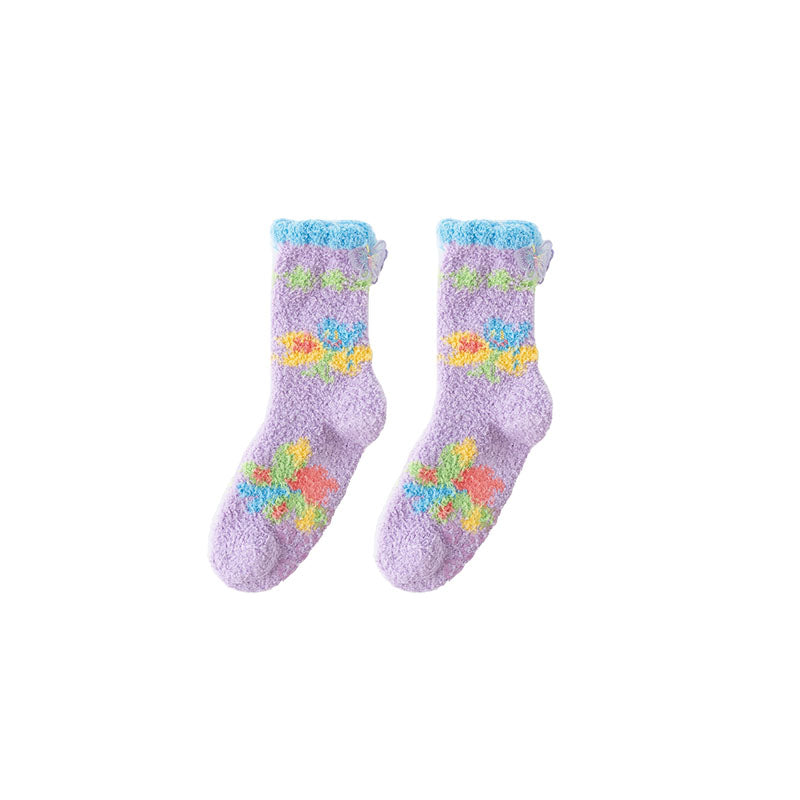 Sweetnana 롤드 엣지 자카드 홈 양말 선물 박스(320g)는 극도로 부드럽고 포근한 양말 3켤레로 구성되어 최고의 보온성과 편안함을 제공합니다. 각 양말은 사랑스러운 자카드 플라워 패턴, 파스텔 컬러, 그리고 귀여운 롤드 엣지 커프로 달콤하고 여성스러운 분위기를 연출합니다. 고급 폴리에스터 원사와 신축성을 위한 약간의 스판덱스가 혼방되어 있어, 뛰어난 보온성과 함께 통기성도 유지됩니다. 미끄럼 방지 그립 디자인으로 집에서 안전하고 포근하게 착용할 수 있습니다.