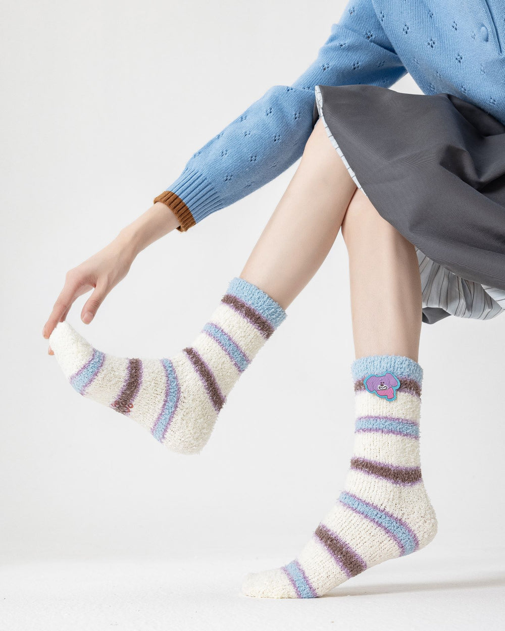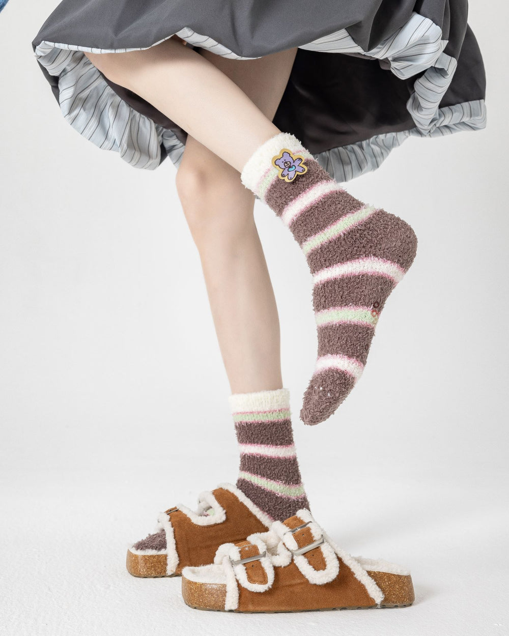 Sweetnana 귀여운 플러시 양말 선물 박스 세트에는 포근하고 다채로운 양말 3켤레가 포함되어 있어 집에서 편안하게 신기 좋습니다. 각 양말에는 장난기 가득한 만화 패치와 밝은 스트라이프 컬러 조합이 더해져 일상에 즐거움과 편안함을 선사합니다. 고급 폴리에스터와 스판덱스 혼방 소재로 제작되어 두껍고 따뜻하며 신축성이 좋아 하루 종일 편안하게 착용할 수 있습니다.