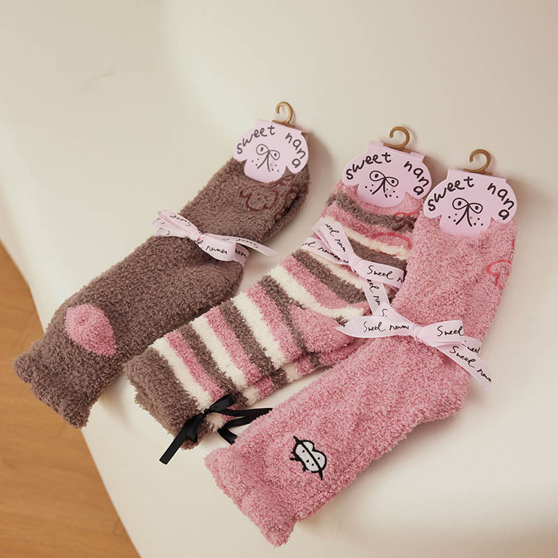 Sweetnana 코지 자수 홈 양말 (선물 박스 세트)는 추운 날과 집에서의 따뜻한 순간에 최고의 편안함을 선사합니다. 부드럽고 포근한 폴리에스터에 스판덱스가 더해져 제작된 이 양말은 사랑스러운 자수 디자인과 다양한 질감이 어우러져 있습니다. 두껍고 폭신한 원단이 보온성을 높여주어 집에서 휴식을 취하거나 잘 때 신기에도 완벽합니다. Sweetnana 선물 박스에 아름답게 포장되어 있어 자신은 물론 소중한 분께 선물하기에도 이상적입니다.