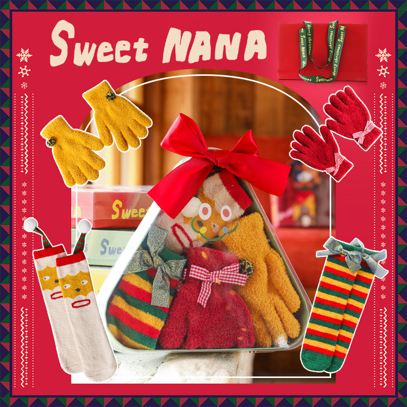 Sweetnana 크리스마스 패밀리 선물 박스 세트는 부모와 아이들을 위한 따뜻한 연말 분위기를 담았습니다. 박스 안에는 산타 줄무늬와 루돌프에서 영감을 받은 포근한 수면 양말, 그리고 연말 컬러의 니트 장갑이 고급스러운 리본 장식의 크리스마스 박스에 담겨 있습니다. 부드러운 폴리에스터-스판덱스 원단은 구름처럼 포근한 촉감과 따뜻함을 유지해주며, 부드러운 신축성으로 편안하게 착용할 수 있습니다. 가족 사진, 영화 감상, 선물 교환 등 다양한 연말 모임에 잘 어울립니다.