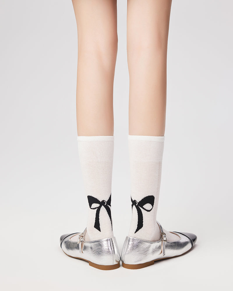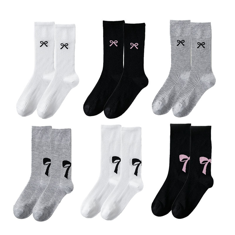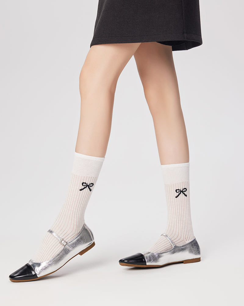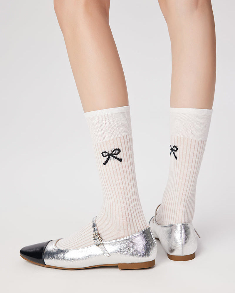 Sweetnana 시크 보우 크루 양말은 따뜻한 계절의 스타일에 세련된 스쿨걸 감성을 더해줍니다. 골지 텍스처와 섬세하게 수놓아진 리본 장식이 모든 룩을 단정하면서도 발랄하게 완성해주어 메리제인, 로퍼, 발레 플랫, 그리고 일상 캐주얼 착장에 완벽하게 어울립니다.