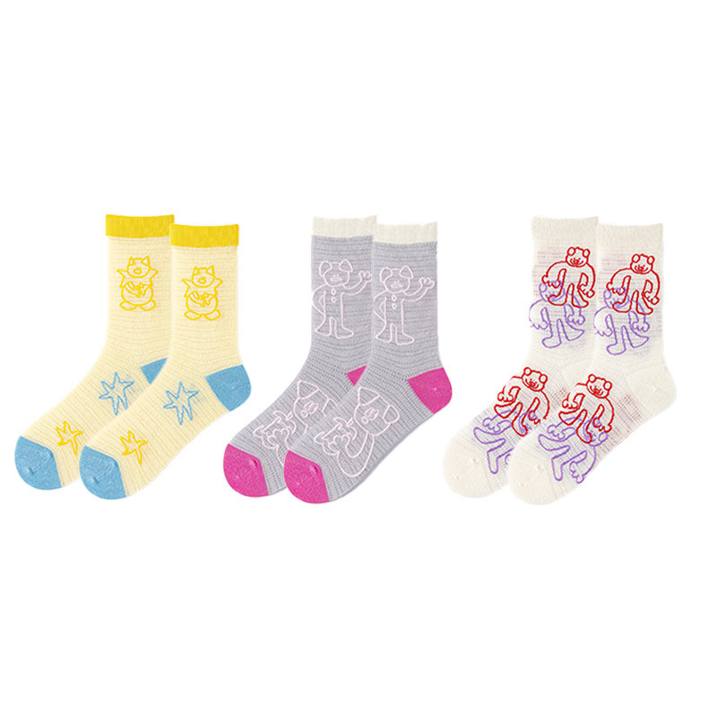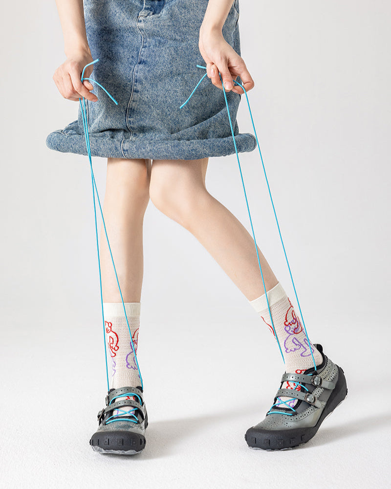 Sweetnana 크리에이티브 스트리트 양말 3켤레 세트로 매 걸음을 스트리트 룩의 일부로 만들어보세요. 각 양말은 서로 다른 유쾌한 일러스트와 컬러 블로킹이 특징으로, 도심 산책, 카페 모임, 파티 밤에 완벽하게 어울리는 재미있고 예술적인 포인트를 더해줍니다.