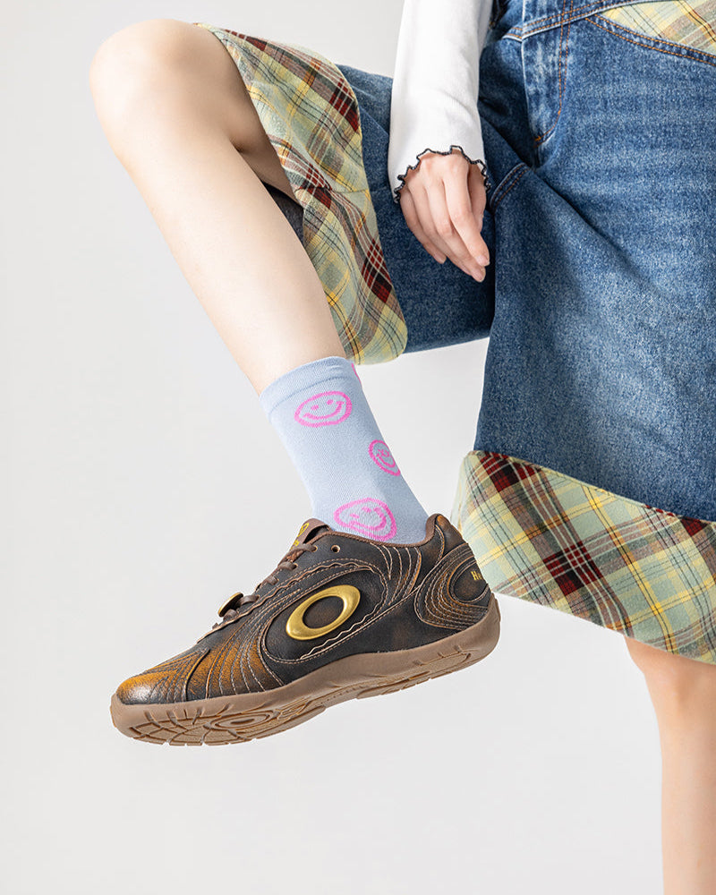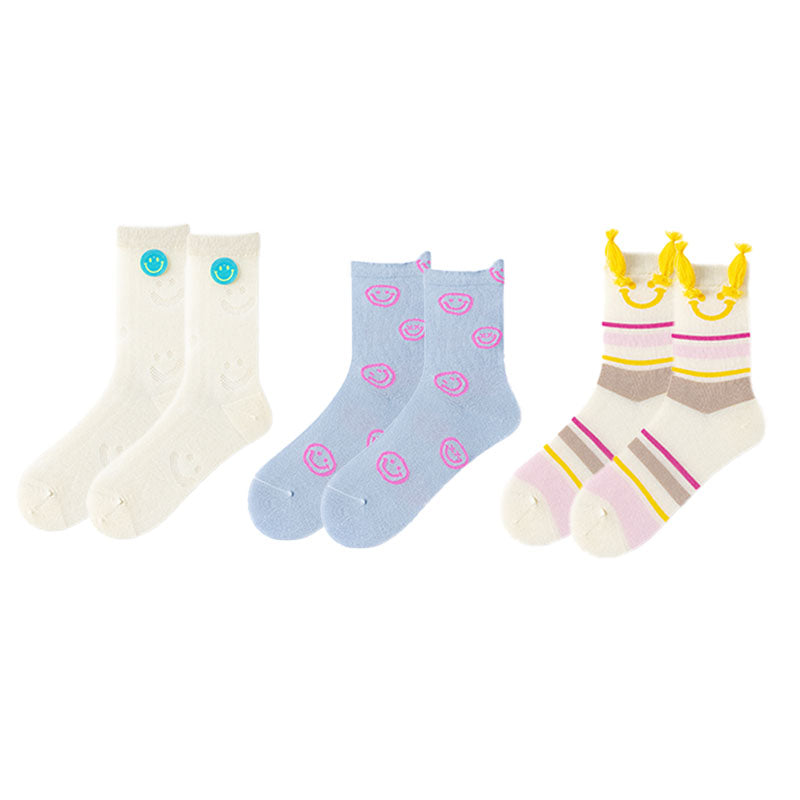 Sweetnana 3켤레 크리에이티브 스트리트 스타일 양말은 재미있는 디자인과 현대적인 편안함을 결합했습니다. 각 양말에는 웃는 얼굴, 왕관, 하트 등 독특하고 장난기 가득한 요소가 담겨 있어, 당신의 스타일에 밝고 경쾌한 분위기를 더해줍니다. 통기성이 좋은 면과 스판덱스 혼방 소재로 하루 종일 발을 쾌적하게 유지해주며, 스니커즈, 로퍼, 캐주얼 슈즈와 매치하기에 이상적입니다.