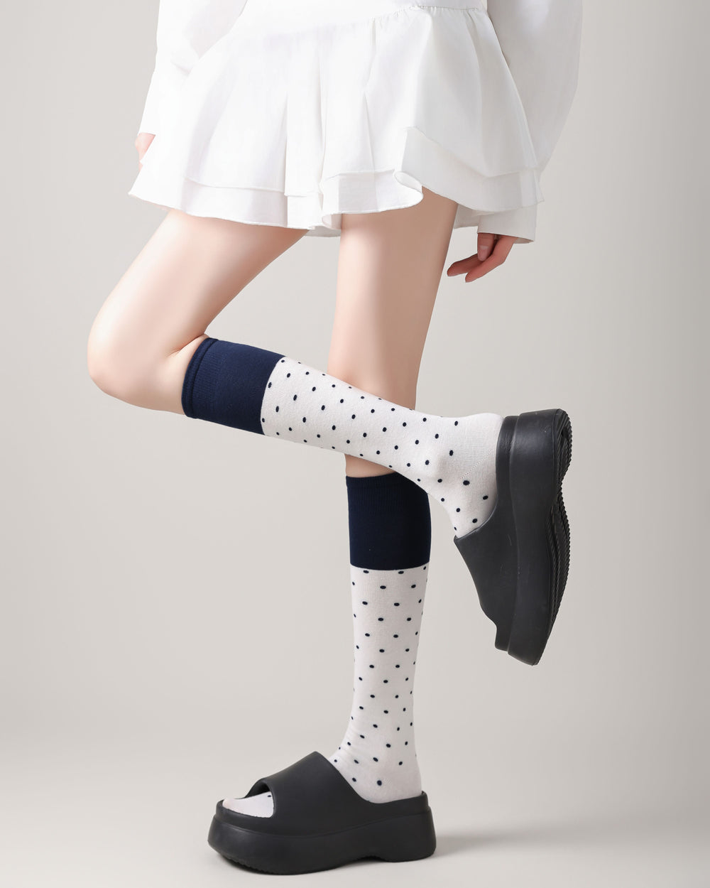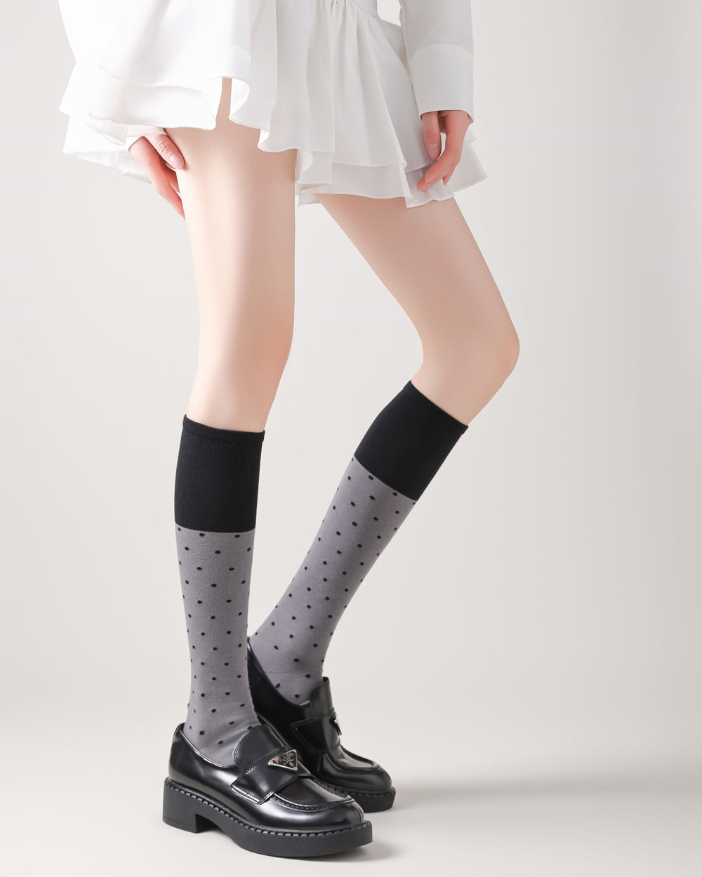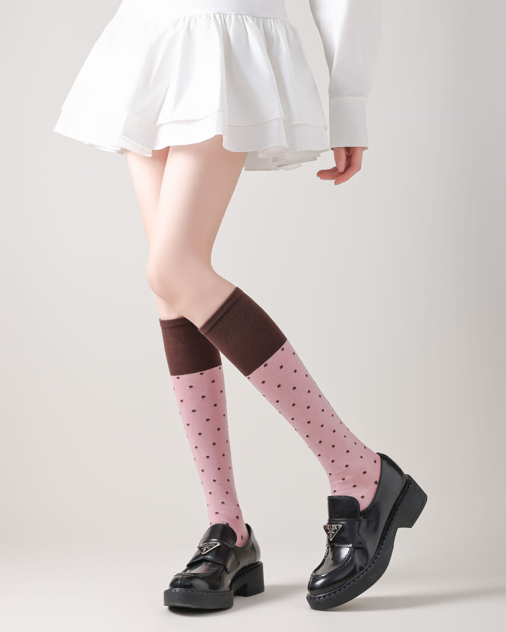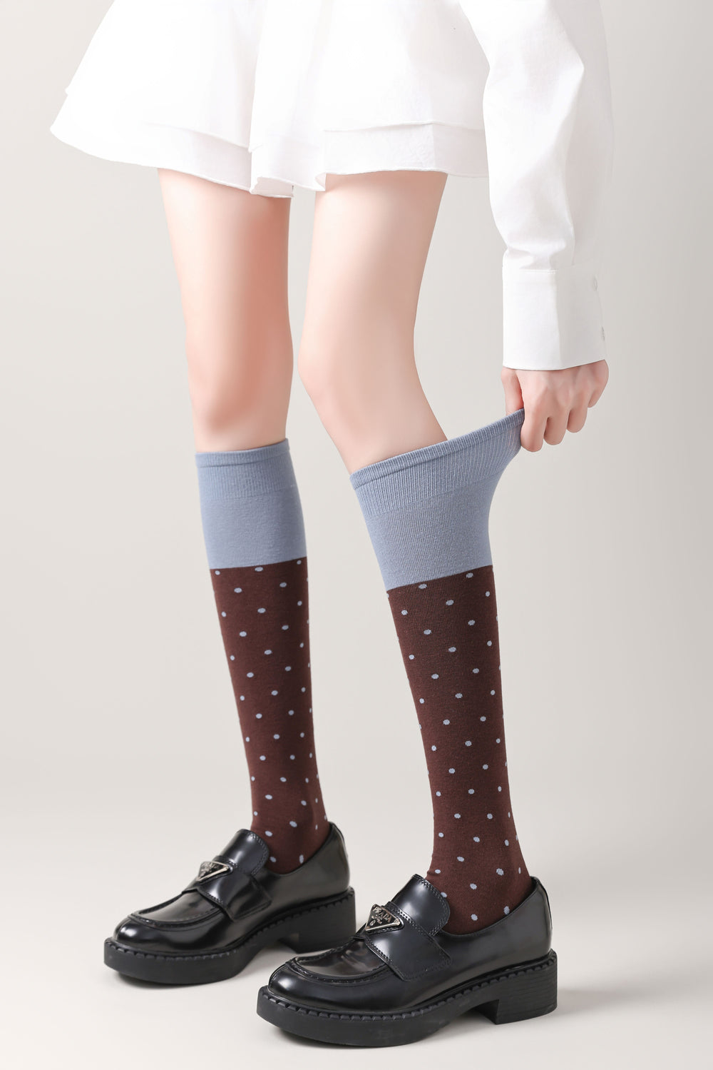 Sweetnana 시크 도트 무늬 니하이 양말은 발랄한 도트 패턴과 대조되는 컬러의 커프로 귀여우면서도 세련된 분위기를 연출합니다. 무릎까지 오는 긴 길이로 다리가 길어 보이며, 스커트, 원피스, 메리제인 슈즈와 완벽하게 어울려 상큼한 캠퍼스룩이나 시티걸 스타일을 완성할 수 있습니다.