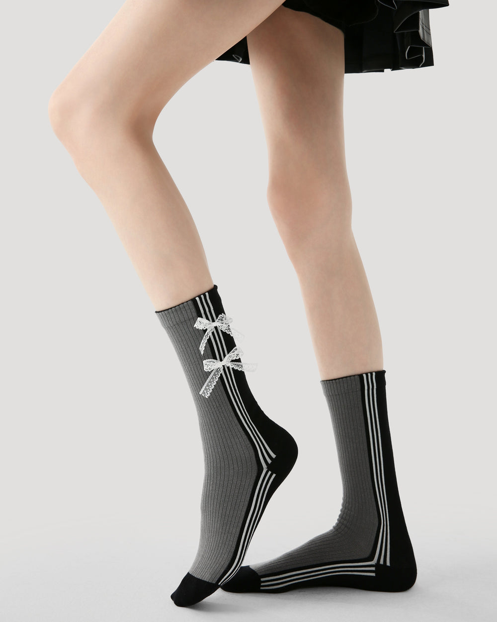 디자인: 그레이 세로 스트라이프 리본 매듭 골지