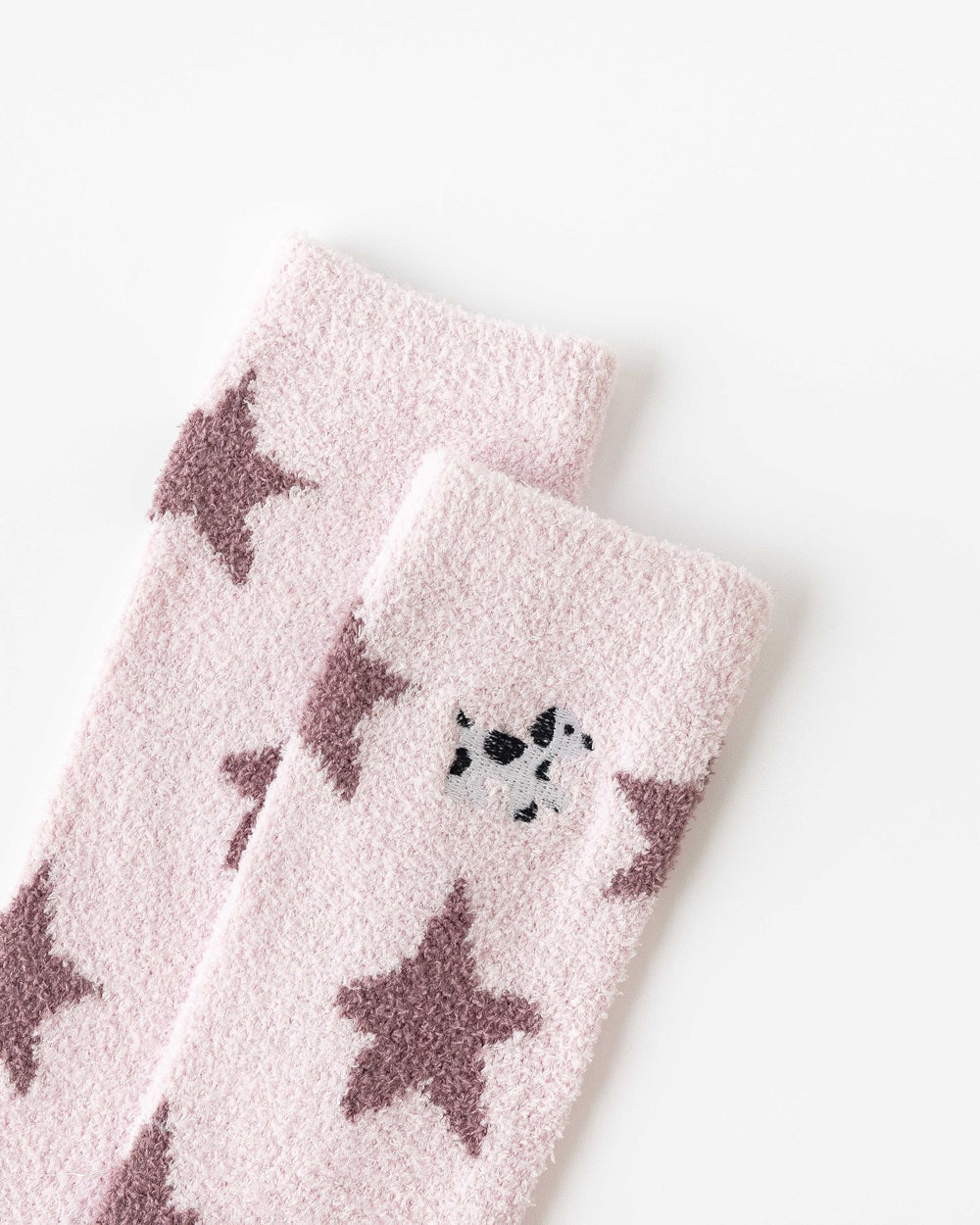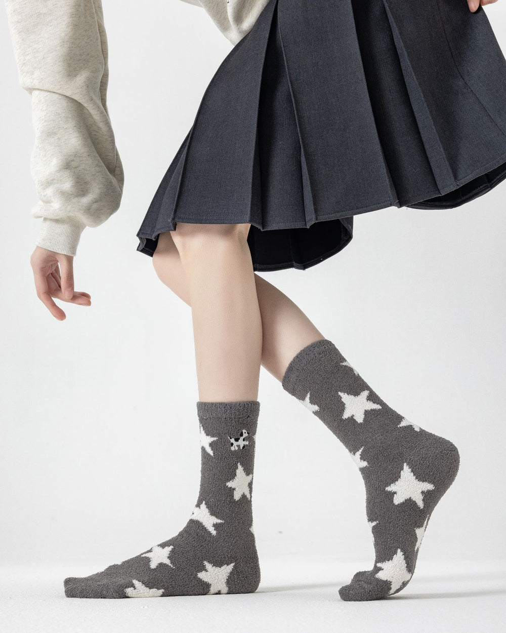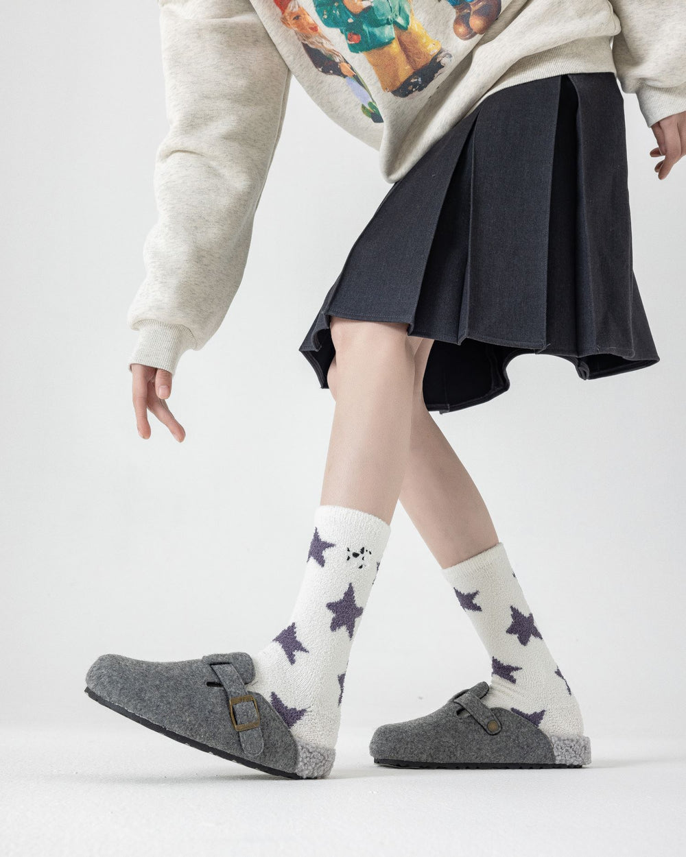 Sweetnana 스타 자카드 스트리트 양말로 일상적인 스타일에 꿈같은 반짝임을 더해보세요. 장난스러운 별 패턴과 포근한 커프로 마무리된 이 양말은 귀여운 미학과 스트리트 감성을 동시에 담았습니다. 부드러운 니트 소재가 피부에 편안하게 닿으며, 쌀쌀한 가을과 겨울에도 발을 따뜻하게 지켜줍니다.