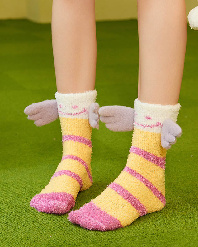 Sweetnana Cute Plush Socks Gift Box Set includes two pairs of fluffy, colorful socks designed for cozy home wear. Each pair features playful 3D cartoon details and cheerful color combinations that bring fun and comfort to your daily life. Made from high-quality polyester and spandex blend, these socks are thick, warm, and stretchy for an all-day comfortable fit.