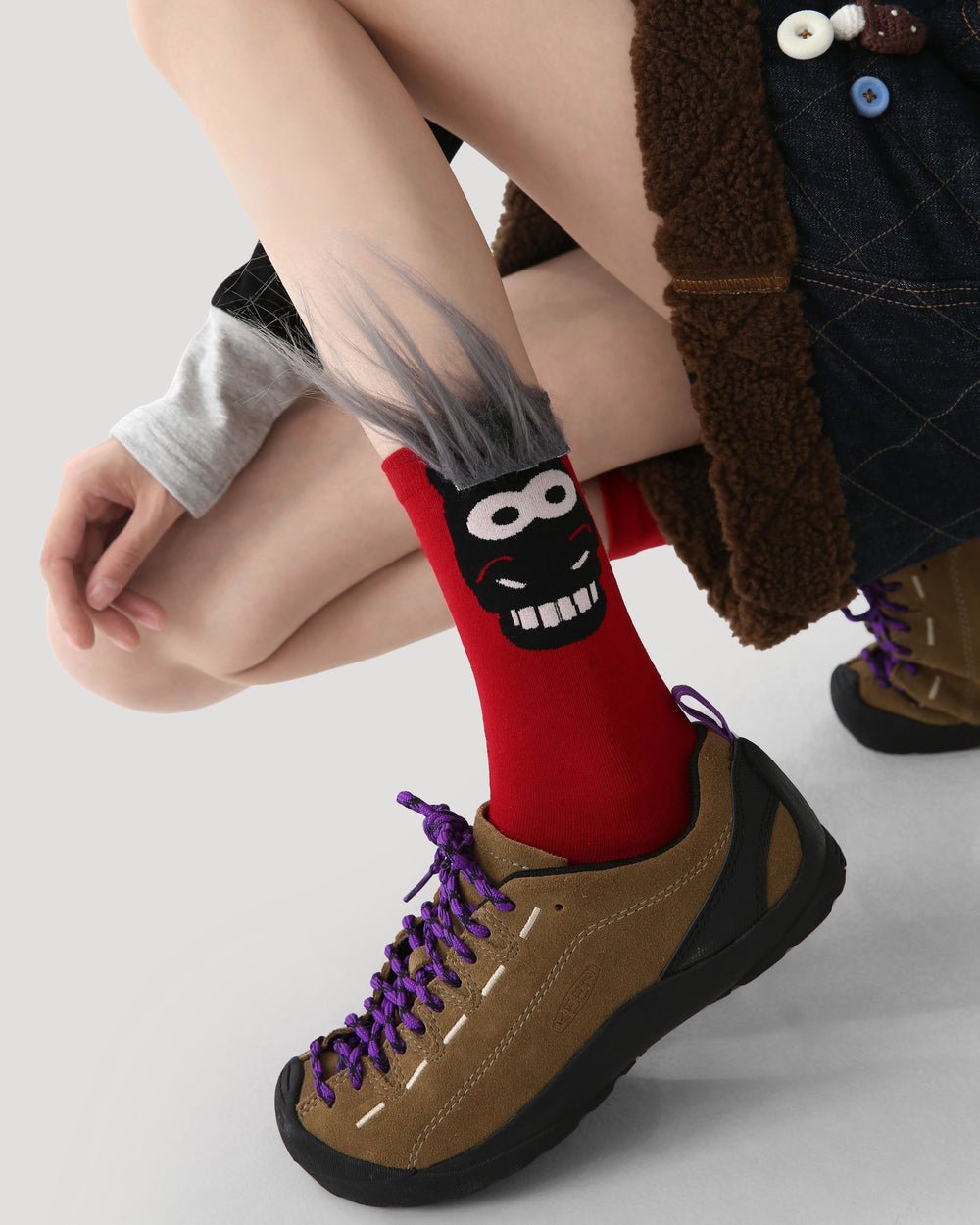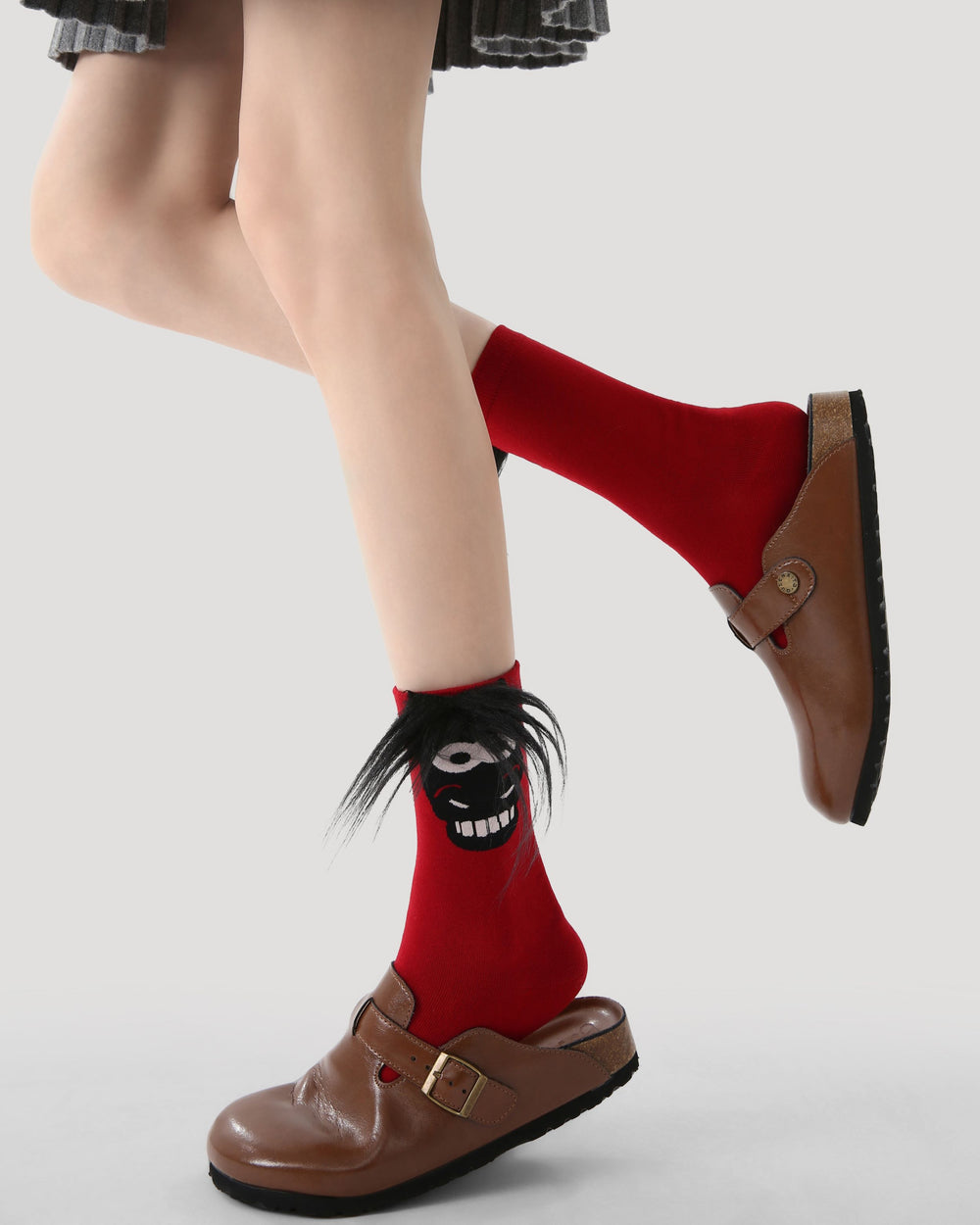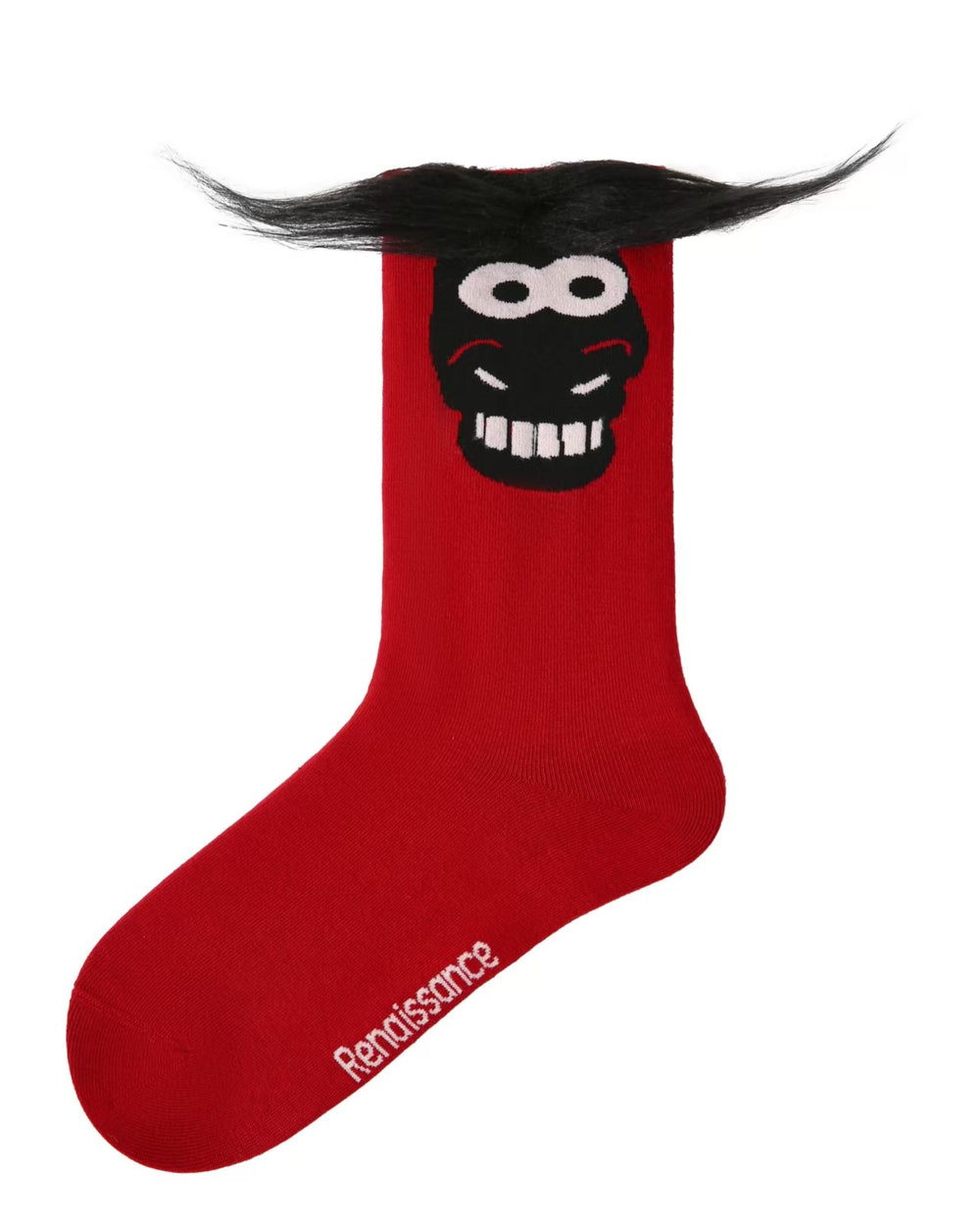 Made from a breathable combed cotton blend, these socks balance softness, stretch, and structure to support the added 3D hair element. The crew length offers easy everyday styling, while the vivid red base enhances the novelty character—perfect for celebrations, gifting, or adding fun to daily outfits.