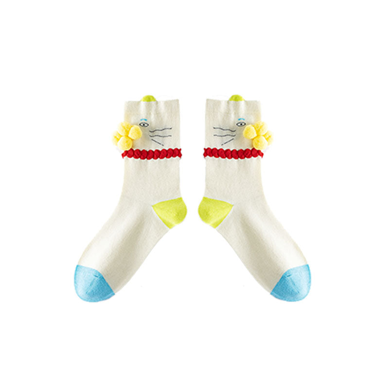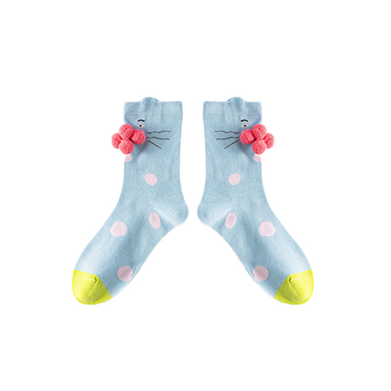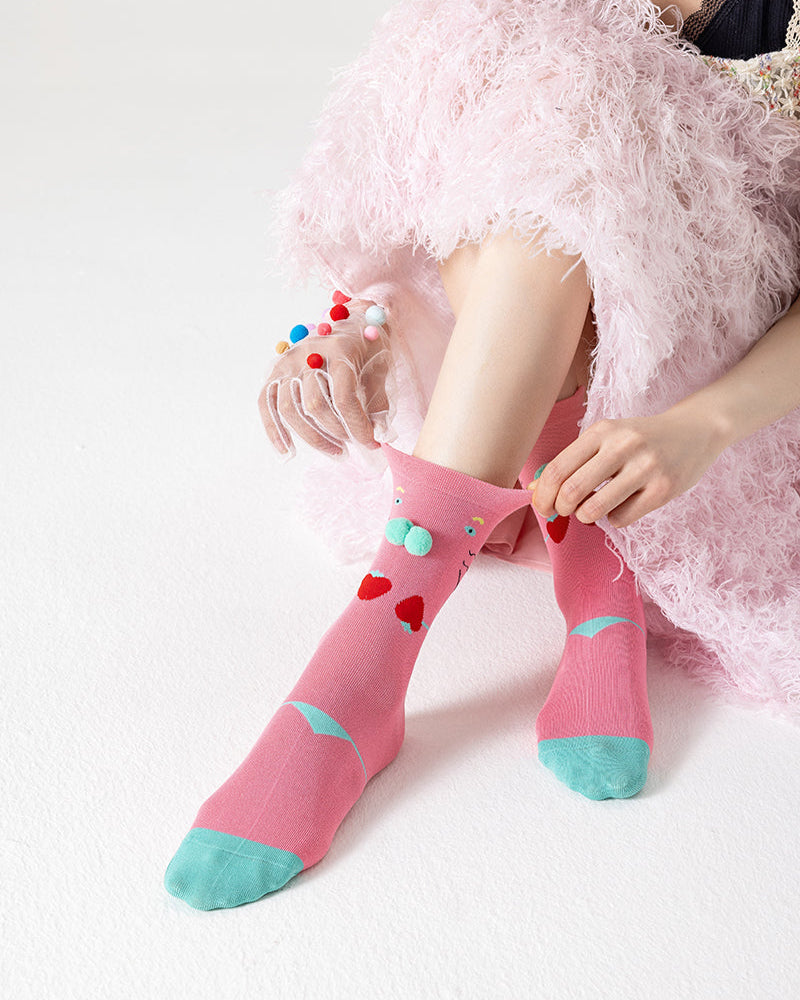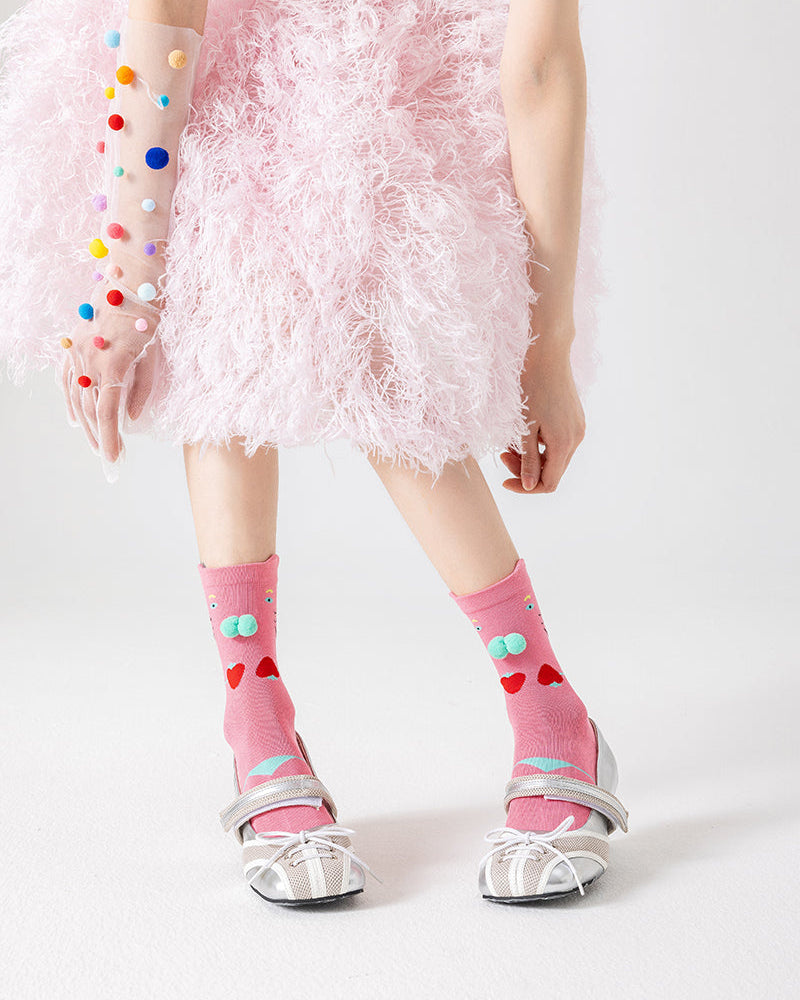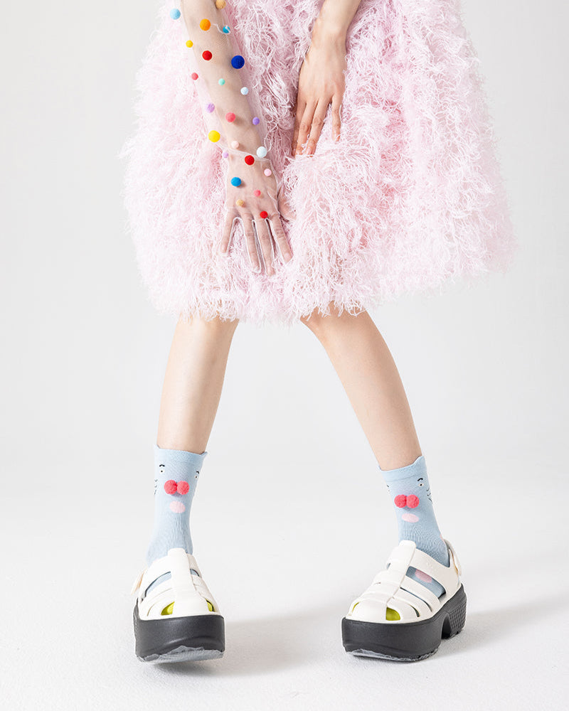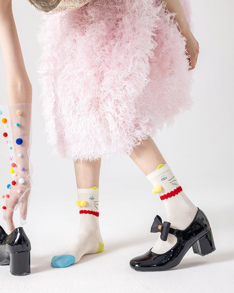 Sweetnana Creative Pom-pom Socks (3-pair set) turn everyday looks into statement outfits. Each pair features playful pom-poms and bright color blocking on a breathable cotton-blend base for cool, comfy wear in warmer seasons. Light, stretchy, and personality-packed—perfect for girls who love fun details.