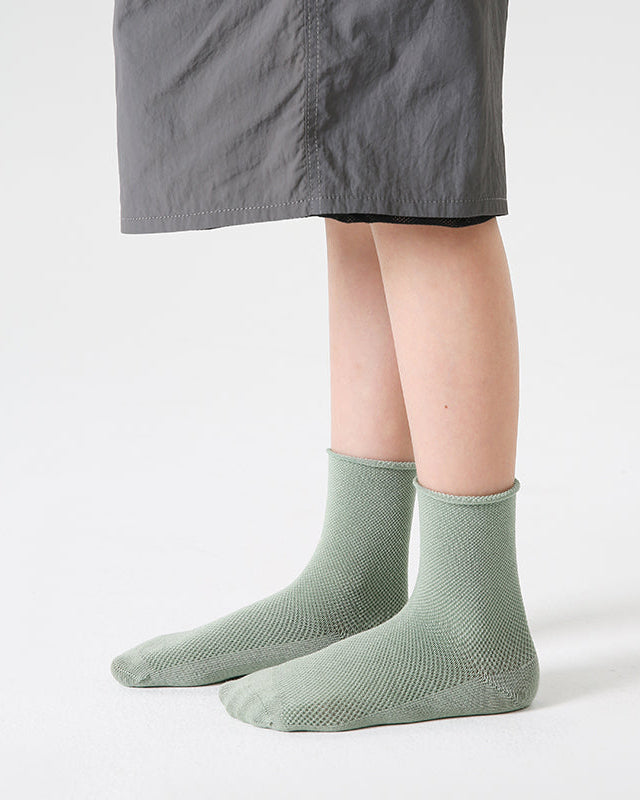 Sweetnana Kids Mesh Crew Socks keep little feet fresh and comfy. The fine combed-cotton body is light and soft, while the side-mesh panels boost airflow during active play. A pressure-free cuff and flat toe seam help prevent marks and rubbing — ideal for everyday school and weekend adventures.
