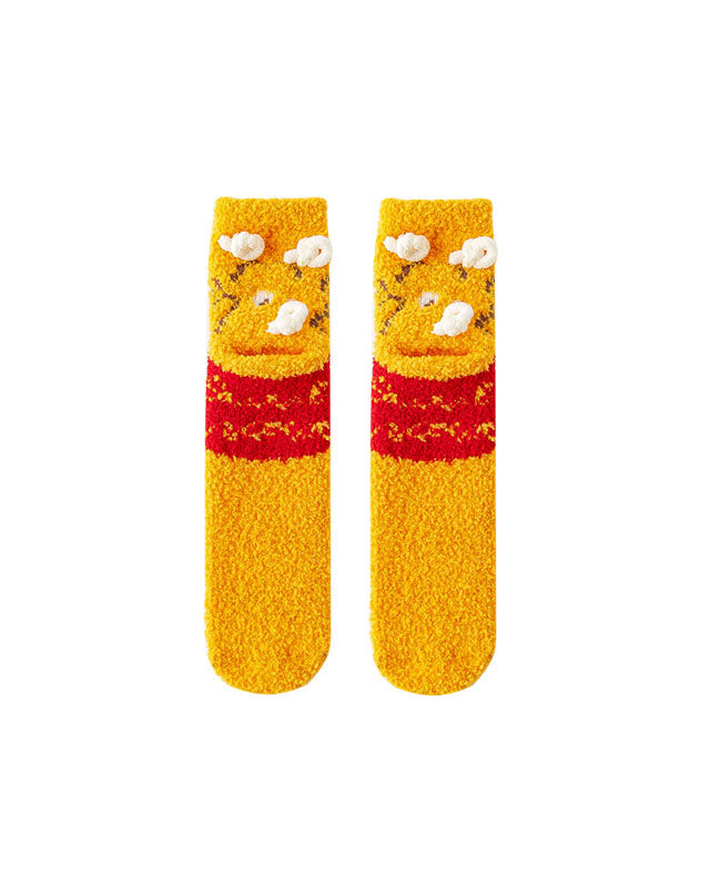Sweetnana Non-Slip Fuzzy Crew Socks wrap your feet in plush warmth with a playful twist. The high-pile fabric feels cloud-soft, while the fun tassel cuff and bright jacquard accents make them party-ready even at home. Full-sole silicone grips add steady traction on smooth floors, and the gentle stretch cuff stays up without leaving marks—perfect for cozy nights, pajama parties, or gifting.