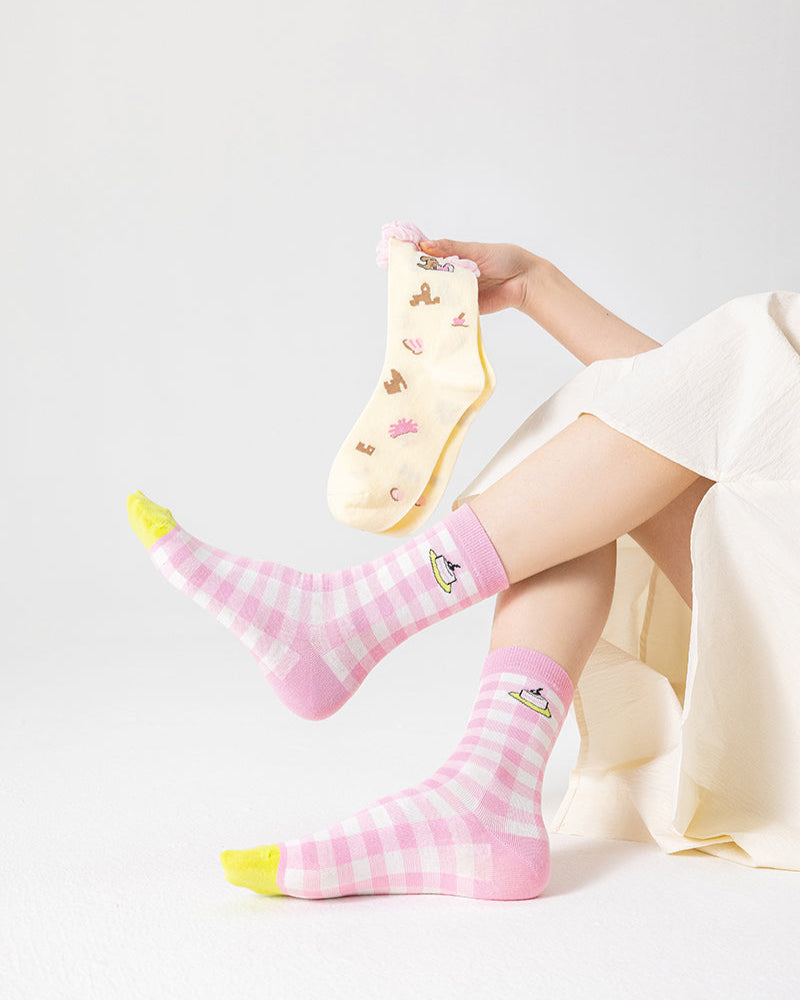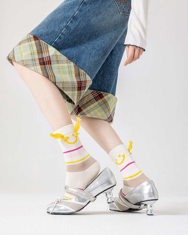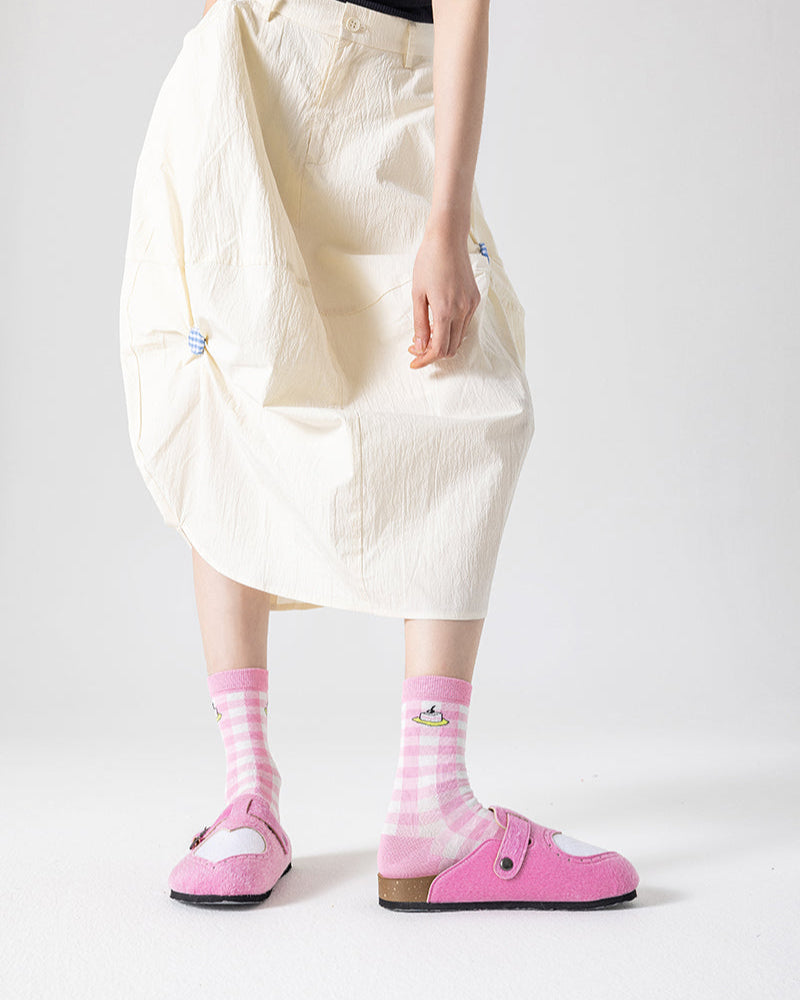 Step into sunny days with the Sweetnana Street Party Gift Box Set. This trio of crew socks mixes soft cotton yarns with creative patterns, turning every step into a little piece of styling fun. From playful badges to candy-like stripes, each pair brings its own character while keeping your feet light and breathable.