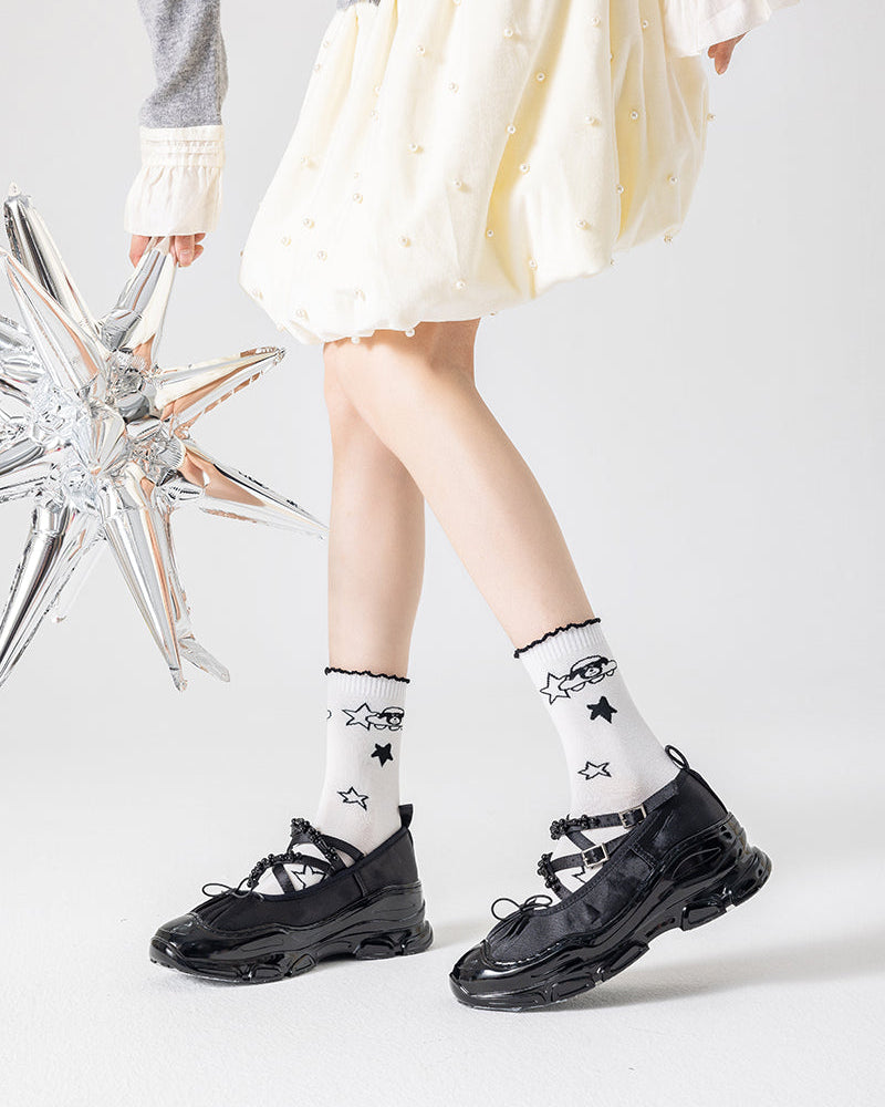 Sweetnana Creative Pattern Socks (single pair) feature lively graphics and a soft cotton-blend yarn that keeps feet comfy through classes and casual days. The breathable knit and elastic cuff deliver a snug, no-slip fit while the playful artwork adds a pop of personality to any outfit.