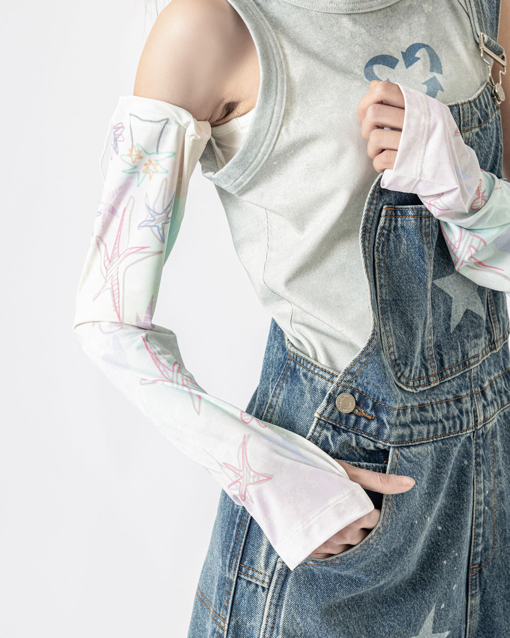 Design: Rainbow Starfish and Butterfly Gradient Print, Ice Silk Cooling Fabric, Excellent UV Protection, Soft and Breathable