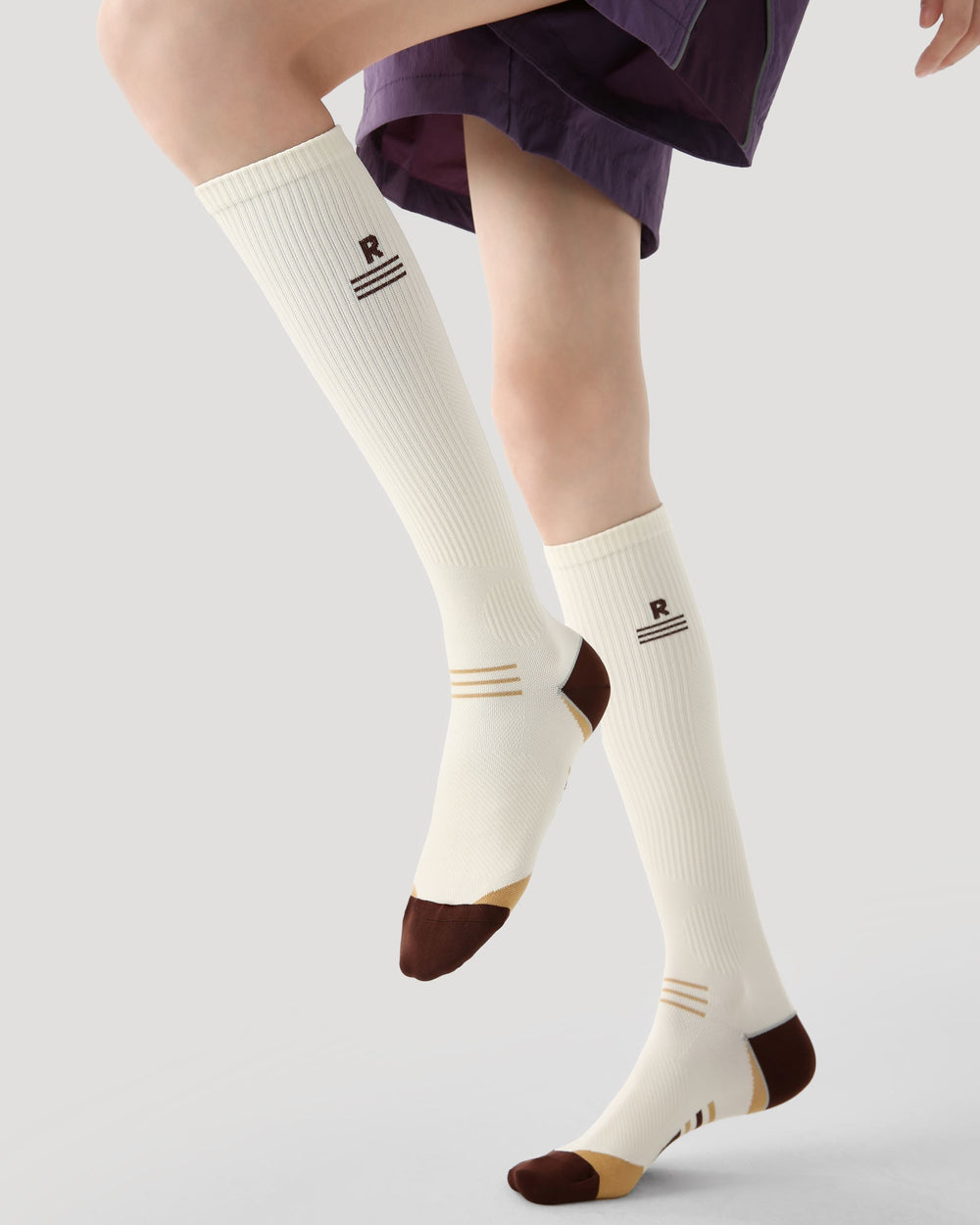 Design: 羅紋紋理、刺繡標誌、對比棕色鞋頭與鞋跟