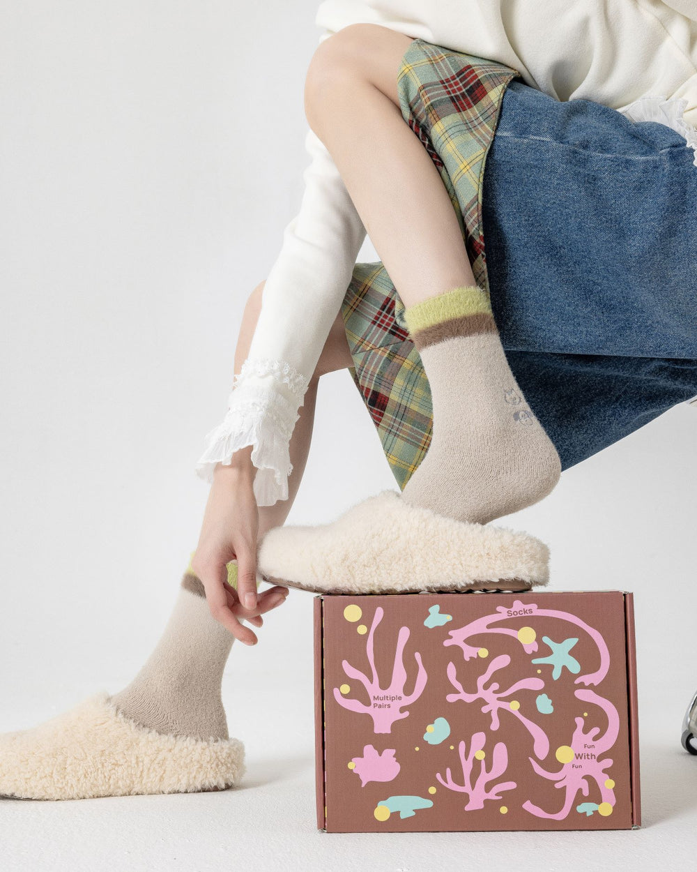 專為溫馨冬日設計,Sweetnana 提花卡通刺繡三雙禮盒組結合了柔軟溫暖與可愛家居時尚。每雙襪子皆採用親膚柔軟的提花質地,搭配俏皮卡通刺繡,為您的居家穿搭增添個性。