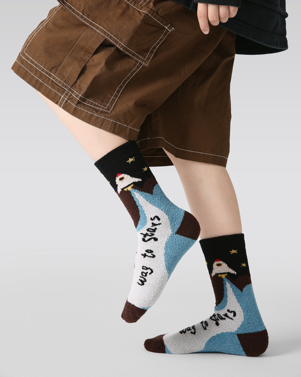 精梳棉混紡材質觸感柔軟且透氣,蓬鬆的珊瑚絨內裡在寒冷的地板上增添舒適溫暖。中筒襪口搭配少量彈性纖維,讓襪子在上學日、戶外遊玩或溫馨電影夜裡,無論穿著厚底運動鞋或靴子都能穩固貼合不易滑落。