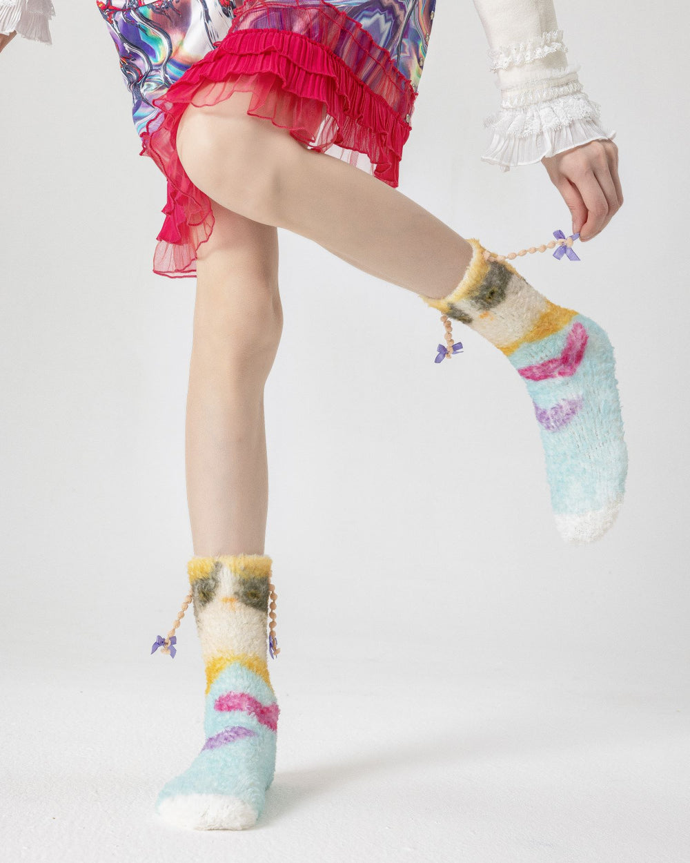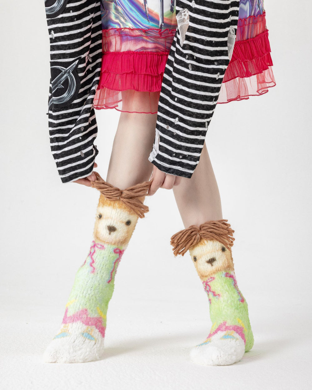 Sweetnana 趣味狗狗襪子為您的溫馨時光帶來歡樂與個性。每雙襪子都飾有可愛的狗狗臉龐和俏皮的蝴蝶結點綴,柔軟絨毛質地讓您的雙腳在室內保持溫暖又時尚。採用 98% 優質聚酯纖維與 2% 彈性纖維精製而成,觸感蓬鬆且彈性極佳,非常適合在寒冷季節居家休閒或作為禮物贈送。