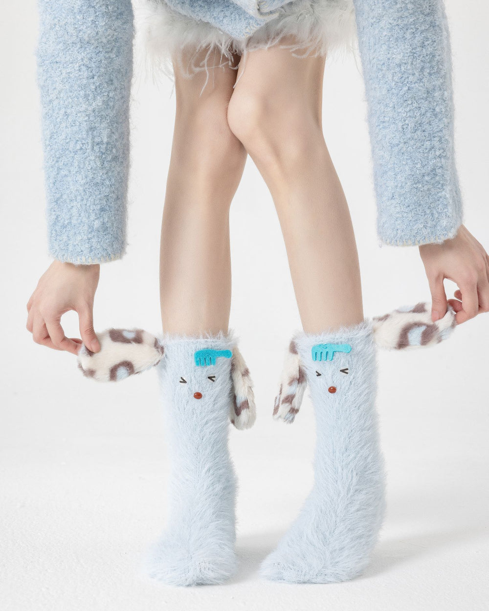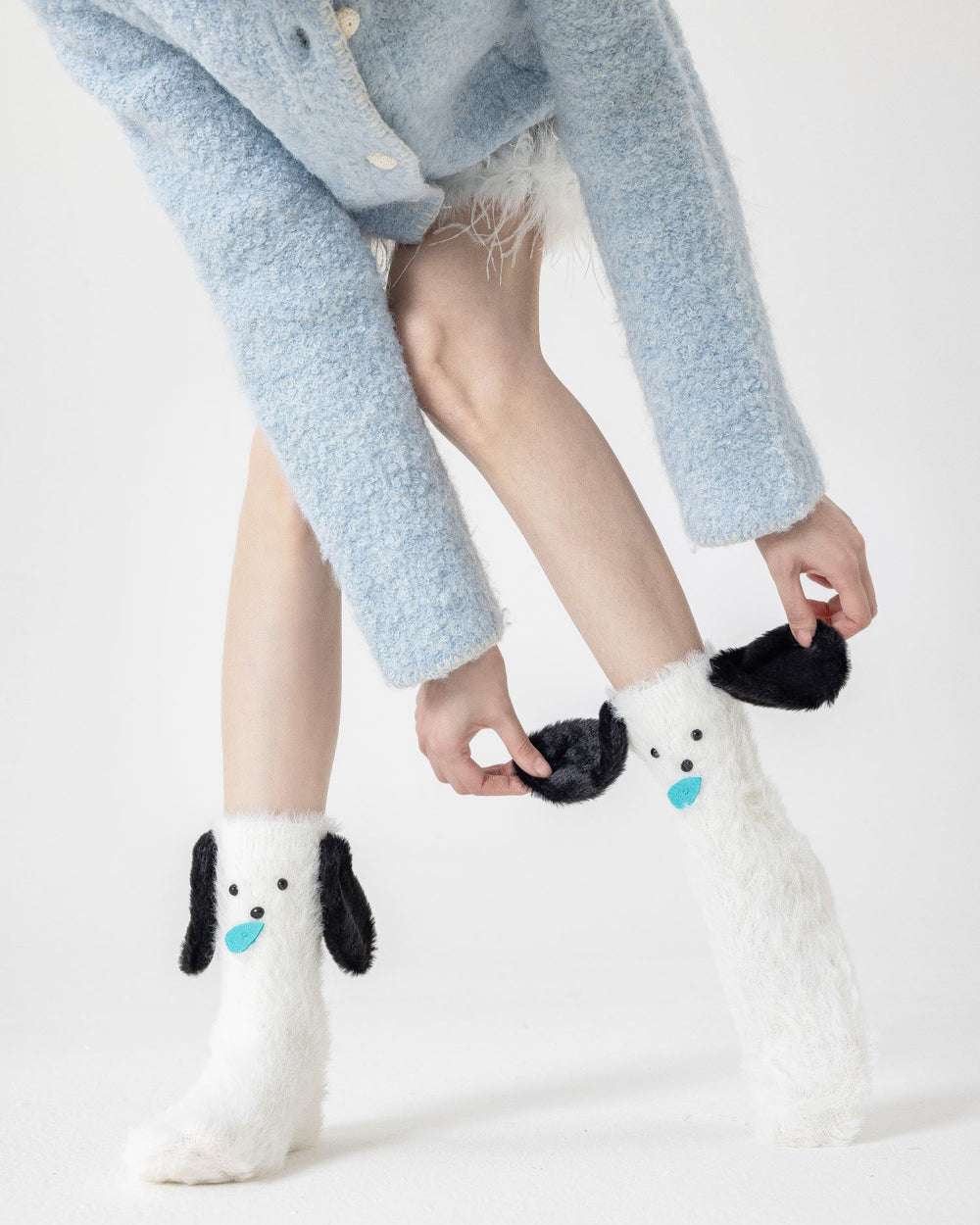 Sweetnana 3D小狗耳朵珊瑚絨襪子(禮盒裝)為你的雙腳帶來蓬鬆溫暖的冬日享受,展現俏皮又適合拍照的造型。3D動物耳朵和刺繡表情增添可愛魅力,防滑鞋底點設計讓你在瓷磚或木地板上行走更穩妥。採用高密度珊瑚絨製成,柔軟有彈性,無論是居家休閒還是寒冷季節睡覺都非常舒適。