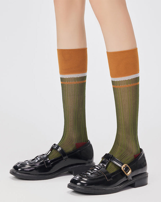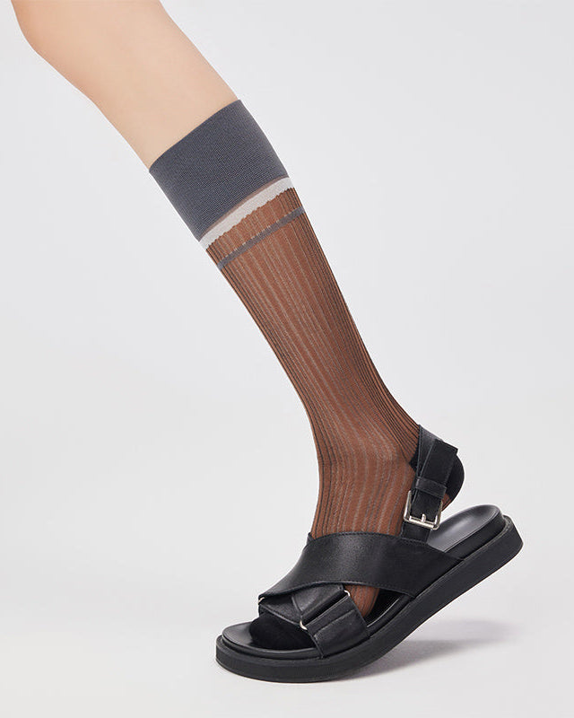 Sweetnana 復古撞色條紋中筒襪結合透氣的 55% 棉、耐用的 30% 尼龍和有彈性的 15% 氨綸,帶來俐落貼合且不易變形的穿著感。輕薄透氣的針織材質與搶眼的撞色襪口,展現俐落復古風格,輕鬆搭配春夏服飾——無論是城市散步、週末市集還是戶外咖啡時光都很適合。