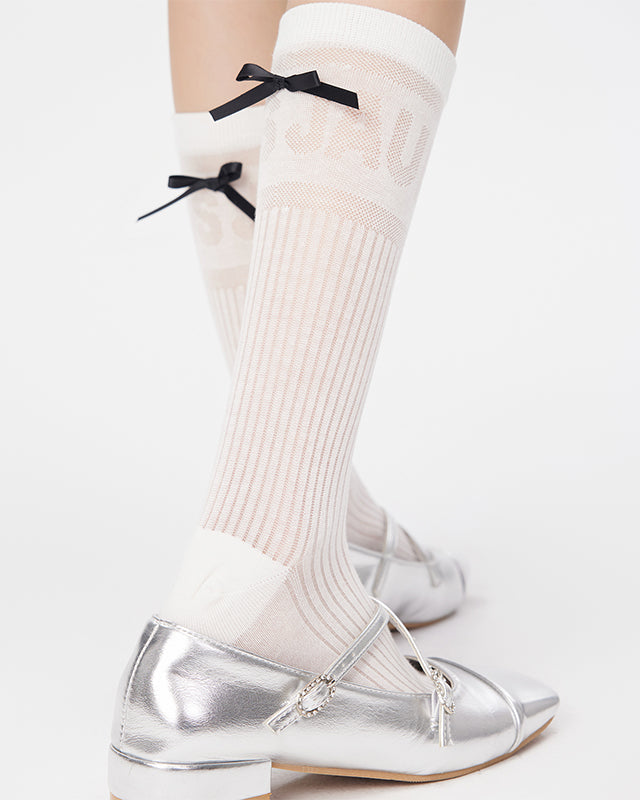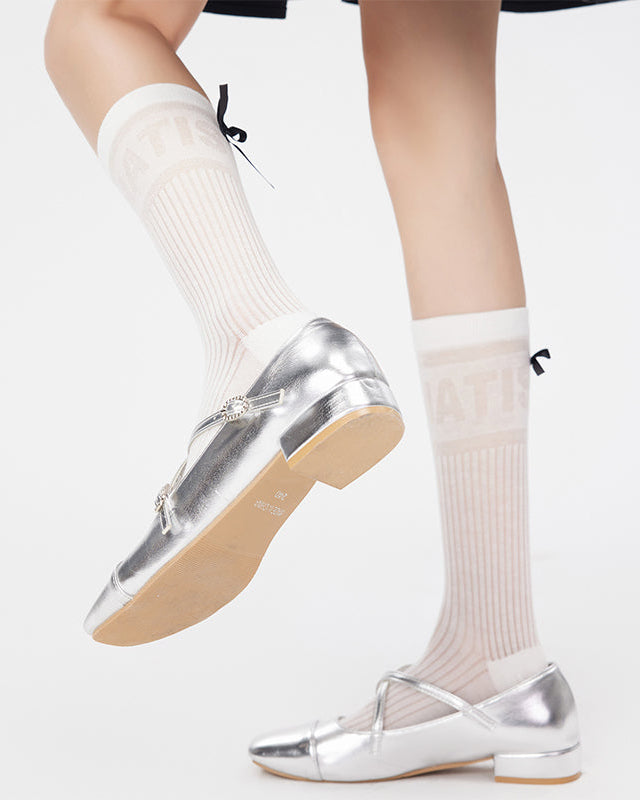 鞋款搭配: 適合樂福鞋、芭蕾舞鞋、牛津鞋或高跟鞋,讓透視網眼與蝴蝶結細節若隱若現,展現輕鬆優雅。