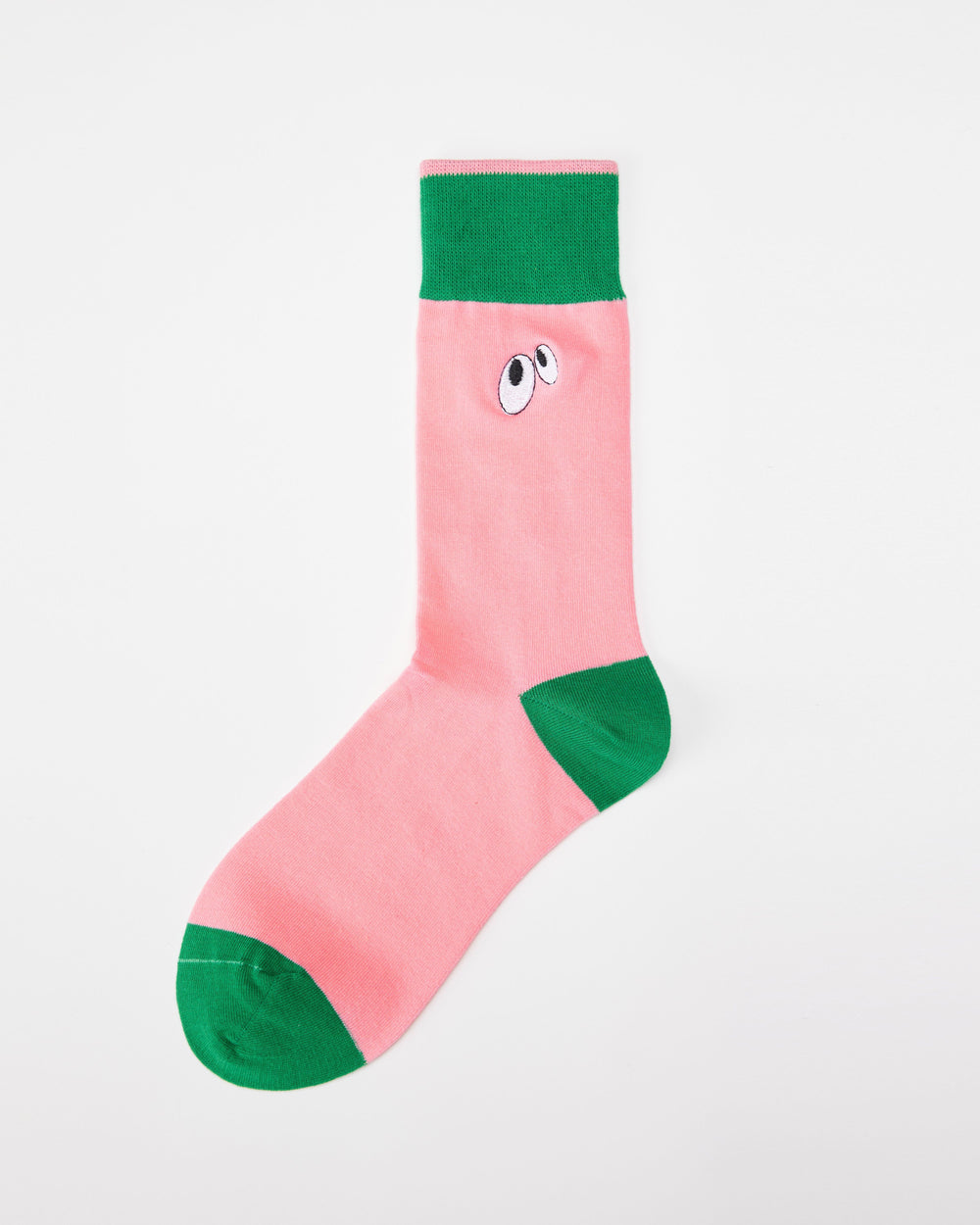 Sweetnana 手工縫製眼睛刺繡中筒襪為日常穿搭增添俏皮感。每雙襪子都以可愛的手工縫製眼睛圖案為特色,結合了可愛與低調街頭風格,非常適合學校造型、休閒穿搭或創意搭配。