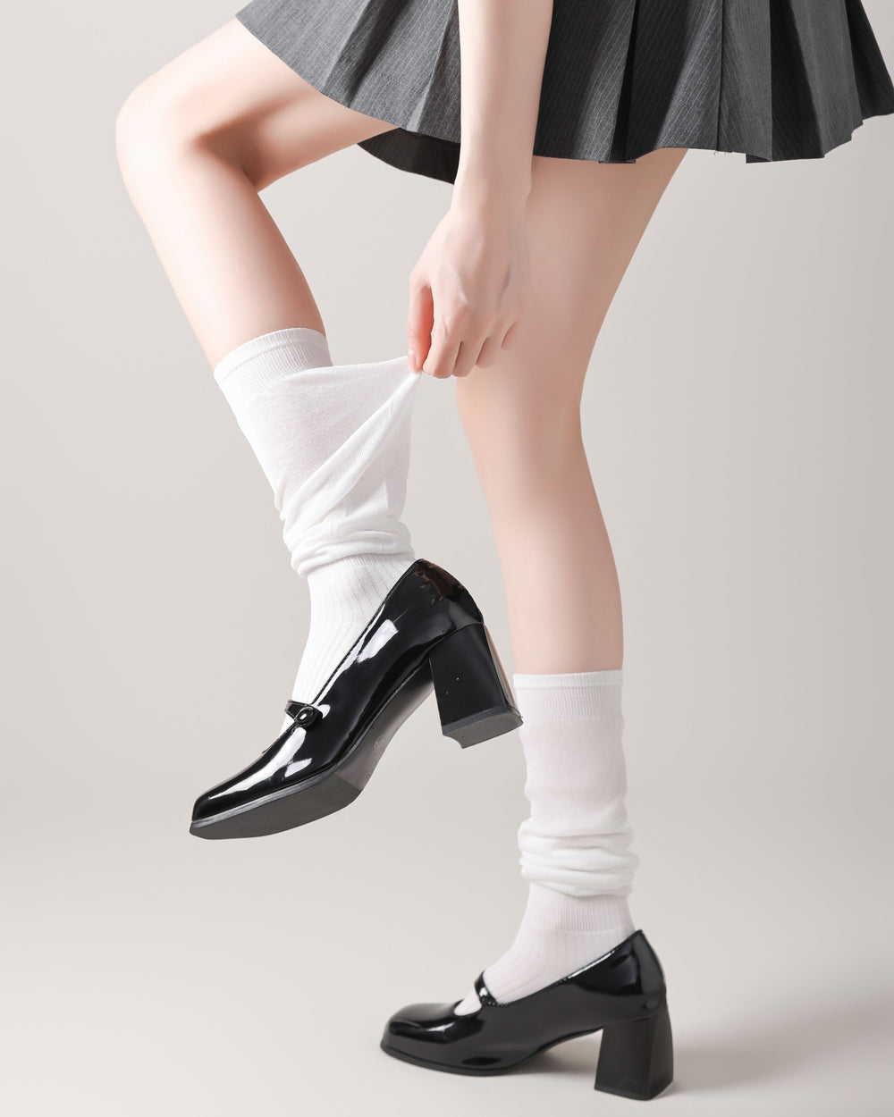 Sweetnana 寬鬆堆堆膝上襪採用柔軟、慵懶的輪廓設計,為秋冬穿搭增添溫暖舒適的氛圍。寬鬆堆疊的造型能在視覺上拉長腿部線條,營造時尚的韓系風格,無論搭配樂福鞋、高跟鞋、靴子或百褶裙都非常合適。