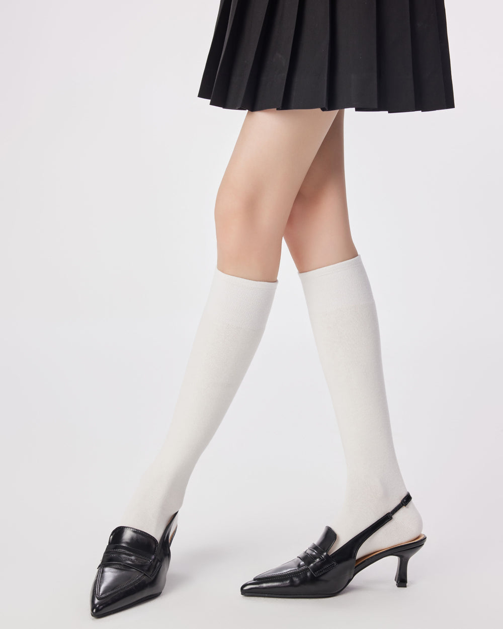 Sweetnana學院風過膝襪展現簡潔、俐落且顯瘦的造型,設計能拉長腿部線條,完美呼應經典的日韓校園美學。素面針織質感輕鬆搭配百褶裙、樂福鞋、瑪莉珍鞋及運動鞋,營造青春校園風格。