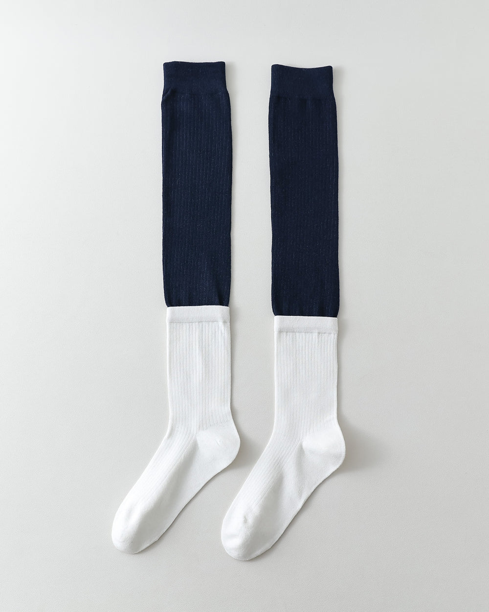 Sweetnana撞色羅紋及膝襪採用運動學院風設計,展現俐落的雙色分割。羅紋質地增添結構感與貼合度,修飾小腿線條,突顯經典校園風格。這款襪子輕鬆搭配裙裝、樂福鞋、瑪莉珍鞋及冬季靴款,打造現代日韓日常穿搭。