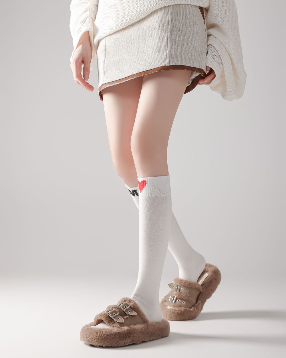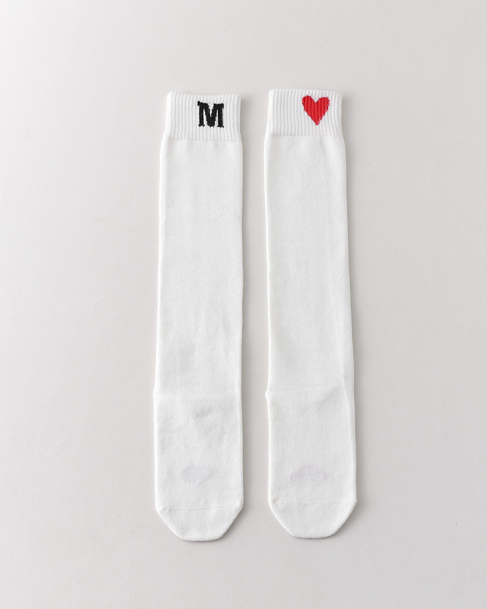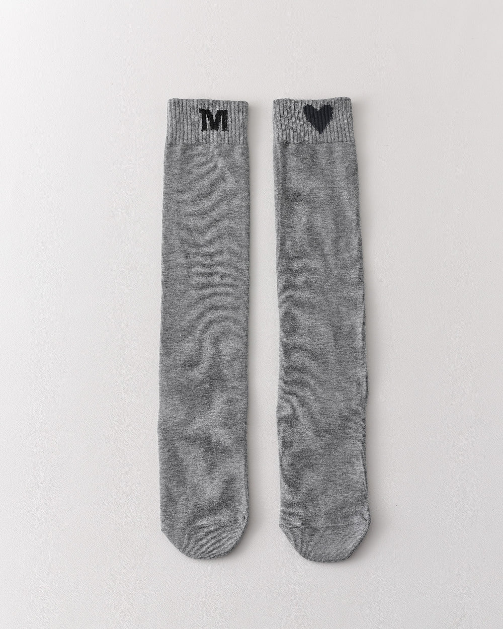 Sweetnana 愛心與字母羅紋及膝襪為日常造型增添溫暖與可愛感。這款襪子採用柔軟精梳棉混紡製成,點綴簡約刺繡愛心與字母細節,低調展現個性。羅紋設計提升彈性與貼合度,無論是在家休閒還是搭配你最愛的樂福鞋或靴子外出,都能讓襪子舒適服貼不易滑落。