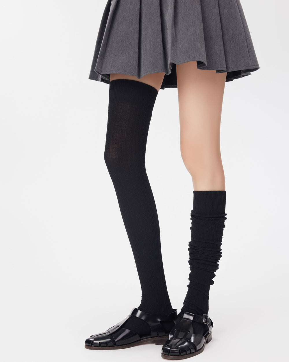採用 80% 高品質精梳棉製成,襪子質地厚實、柔軟,穿著舒適。過膝高度提供額外保暖效果,自然修飾腿型,拉長視覺比例,非常適合春、秋、冬季搭配裙子、毛衣與樂福鞋。
