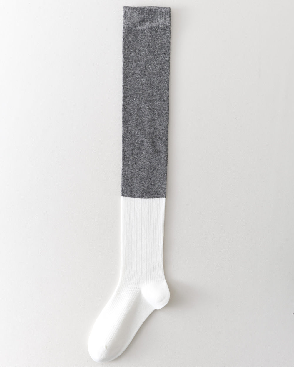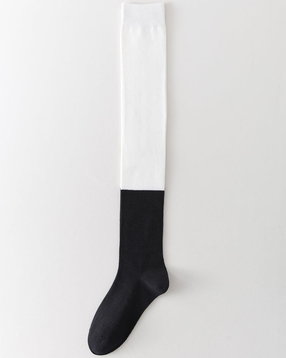 Sweetnana撞色過膝襪以現代拼色手法重新詮釋經典學院風格。襪子上下部分的鮮明對比,營造出顯眼的分割線,視覺上拉長腿部線條,為穿搭增添個性。非常適合喜愛日系、韓系及校園風格的女孩。