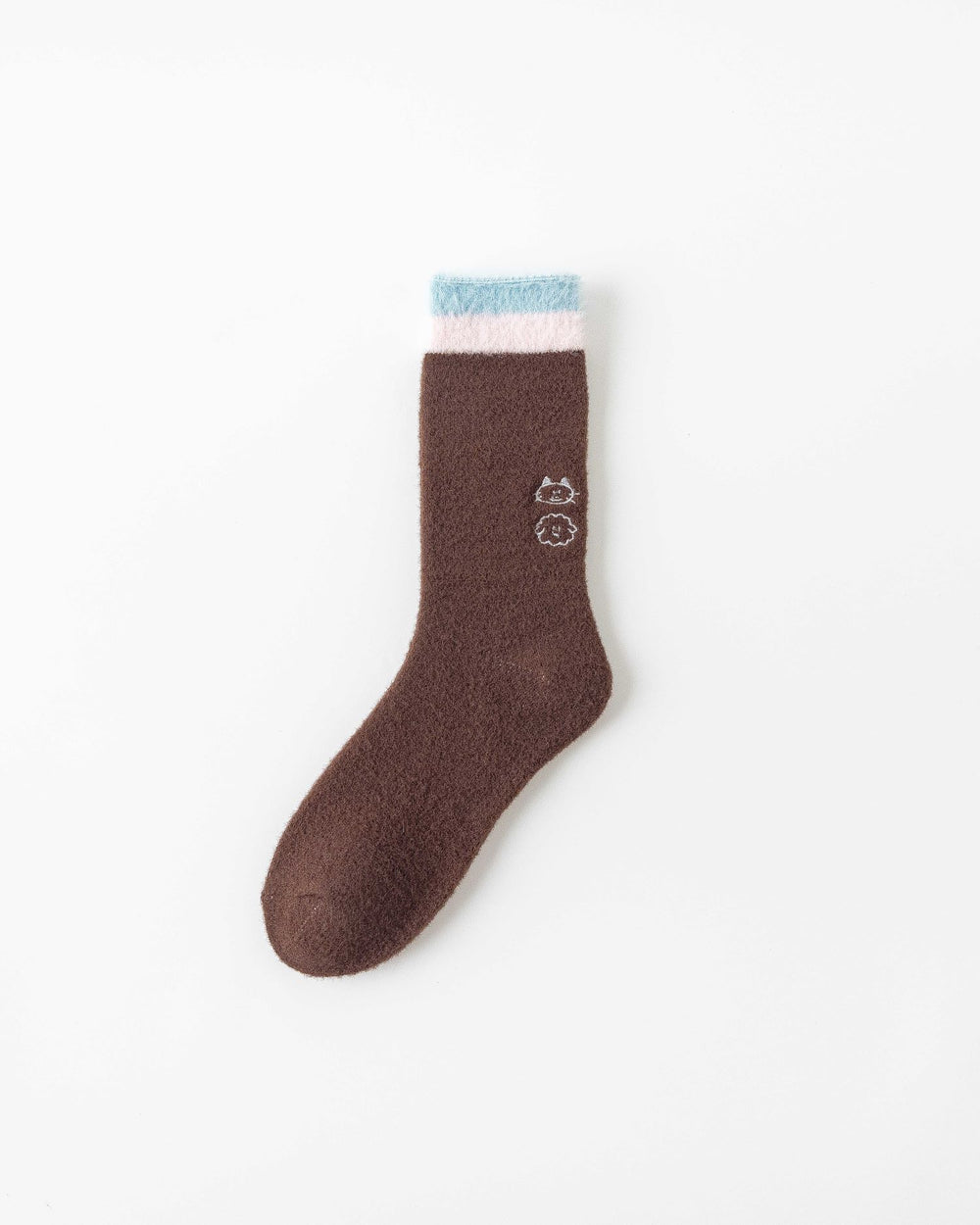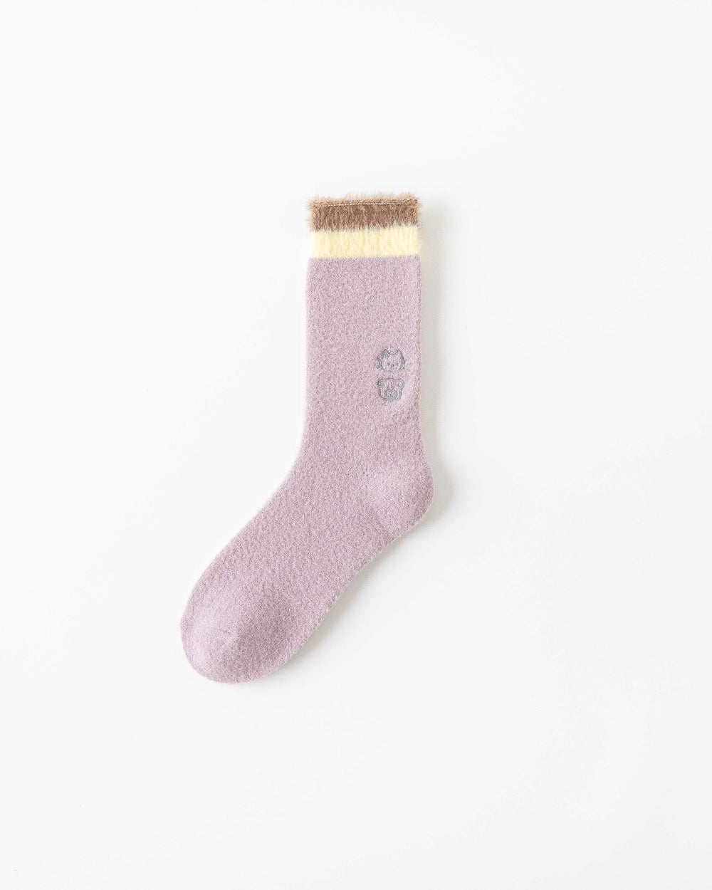 刺繡卡通細節增添俏皮感,使這款襪子不僅是舒適的居家必備品,更是可愛的冬季時尚配件。彈性襪口能固定襪子不緊繃,非常適合長時間舒適的室內穿著。